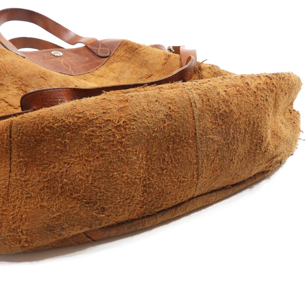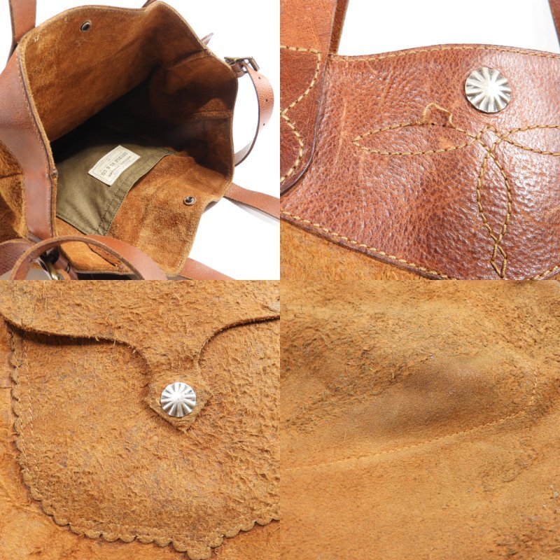 英国製の最高級カーフスウェードを使用した2wayバッグ! 厳選された英国製カーフスウェードで作製されたボディにRRLならではのエイジング加工を施し、ベジタブルタンニンなめしで丹念に仕上げた本物のヴィンテージのような存在感抜群のバッグ!! フロントにコンチョ付きのポケットと開閉部分にコンチョスナップボタンを取り付けた贅沢な仕様になっています。 |