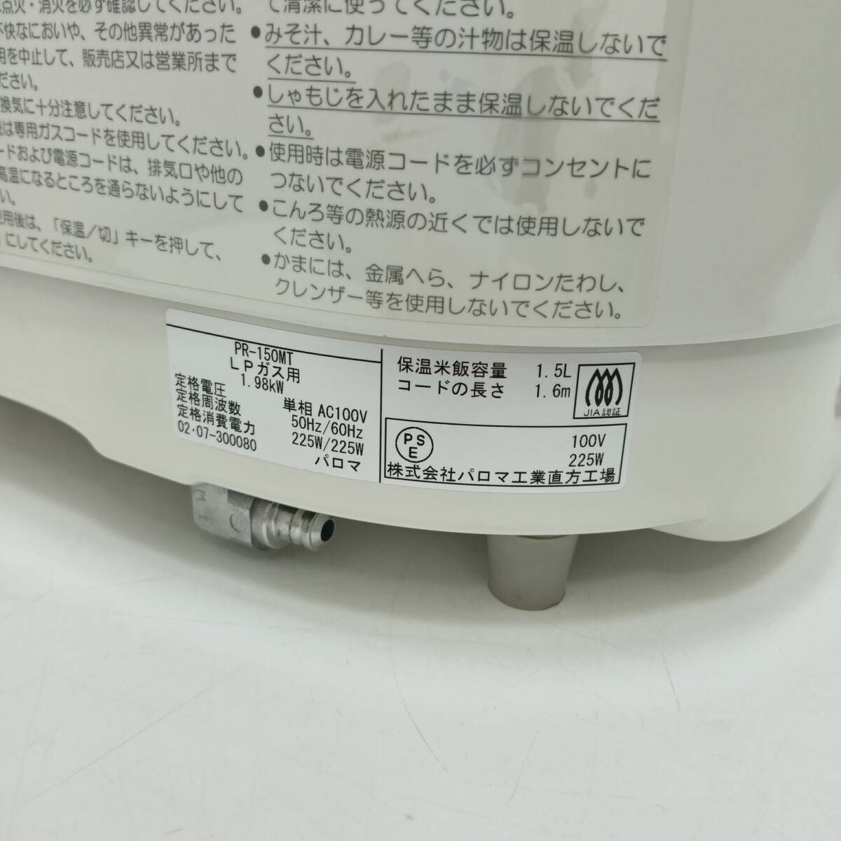 9k0155d1v 2002年製 パロマ/paloma ガス炊飯器 LPガス用 PR-150MT 1.5L 8合炊き 動作確認済み ガスジャー 株式会社パロマ工業直方工場