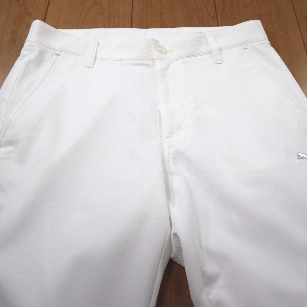 ※大切なお知らせがございますのでご入札やご質問前に必ず最後の注意事項までご覧ください。 ●ブランド PUMA GOLFのロングパンツです。 吸湿速乾性に優れた薄手のパンツです。ストライプ状に軽い凹凸感があり、清涼感のあるサラリとした肌当たりで汗をかいても乾きが早く快適に着用いただけます。春夏から秋口のパンツとして活躍してくれそうです。 裏地付き、軽い伸縮性があります。 株式会社プーマジャパンの正規品です。 ●カラー ホワイト ●素材 表地/ポリエステル100 裏地/ポリエステル100 ●表示サイズ (M/78) 下記の実寸もご確認ください ウエスト80 前股上24 股下79 裾幅20 わたり(股の付け根を左右直線計測)30 (多少の誤差はご了承ください) ●コンディション USEDになりますが着用回数は少ない感じで大変良好です。ダメージやスレほつれ・穴破れ・汚れ・汗染み・色褪せ・毛玉などもなく、しっかりした綺麗な状態ですので今後も十分普通に問題なく着用いただけます。 |
