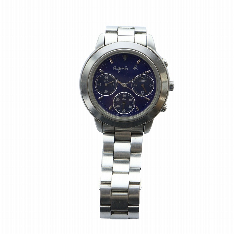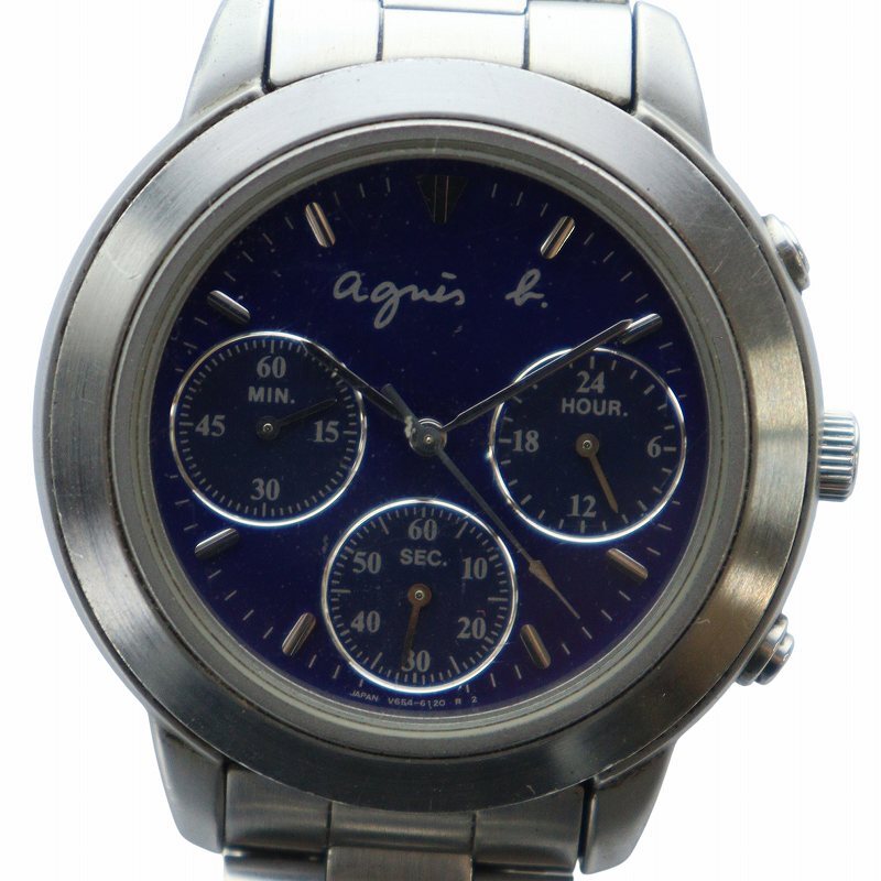 アニエスベー agnes b. 腕時計 ウォッチ クォーツ クロノグラフ ロゴ 青文字盤 シルバー色 V654-6100 ■GY18 /MQ メンズ