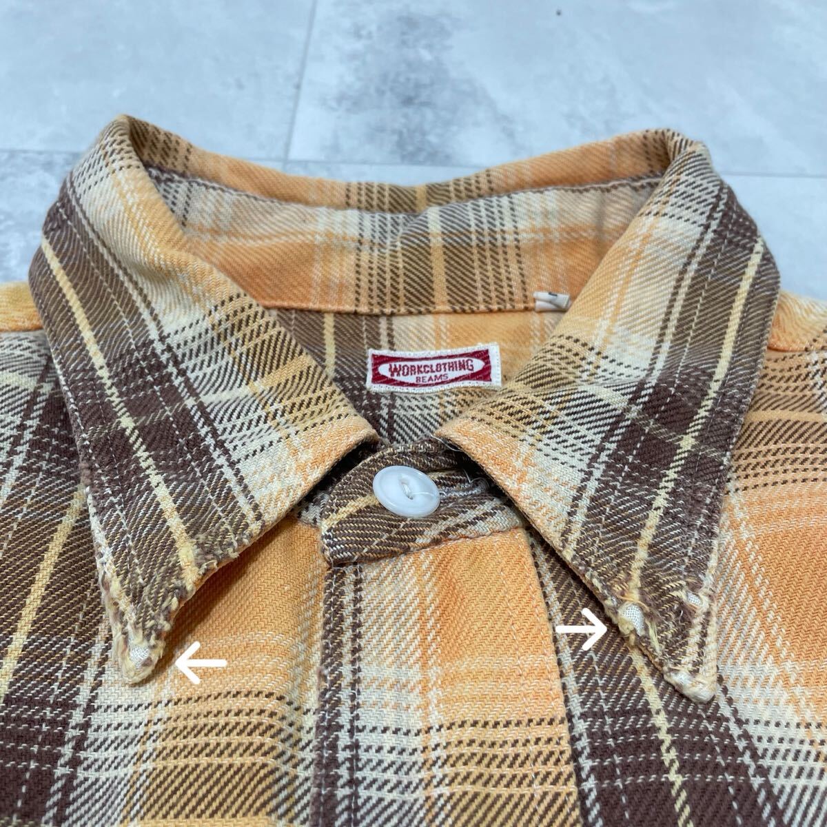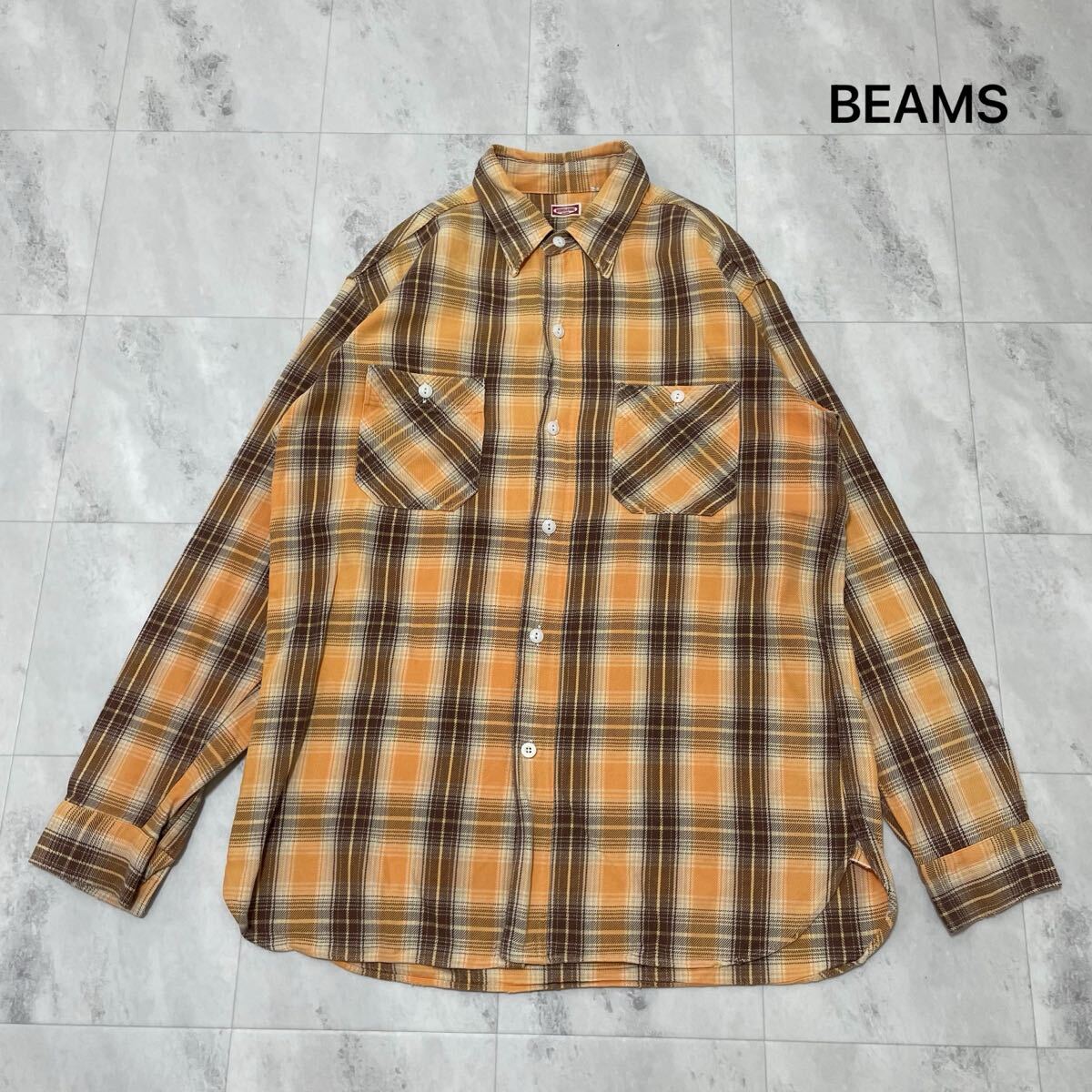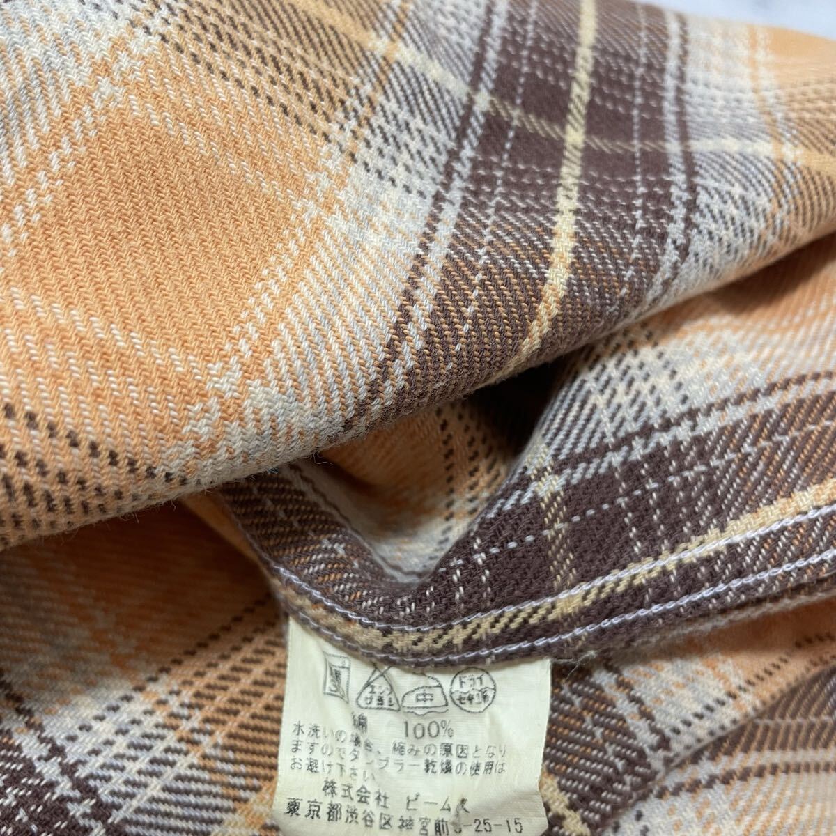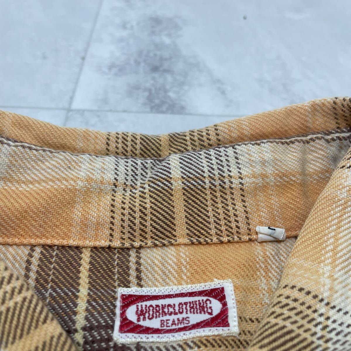 BEAMS ビームス WORK CLOTHING コットンシャツ チェックシャツ 長袖 ポケット 東洋エンタープライズ ワークシャツ オレンジ サイズL 玉na1020