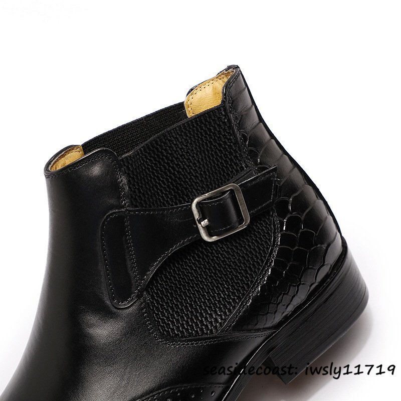 新品◆定価12万 マーティンブーツ メンズ 本革 レザーブーツ ショートブーツ 高級牛革 職人手作り 彫り 美品 皮靴 紳士靴 ブラック 25.5cm