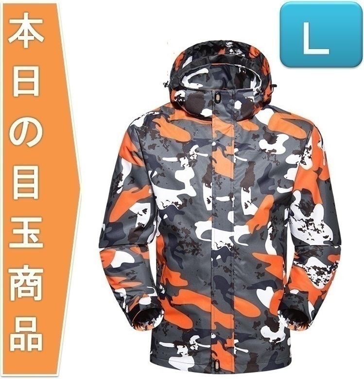 【本日の目玉】メンズ マウンテンパーカー Lサイズ 橙迷彩 アウトドア ジャケット ウィンドシェルジャケット 登山服 アウター 153