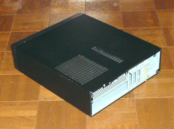 スリムタイプのPCケースで、TFX電源、Micro-ATXマザー用です。側面に8cm角の放熱ファンが取付けられています。