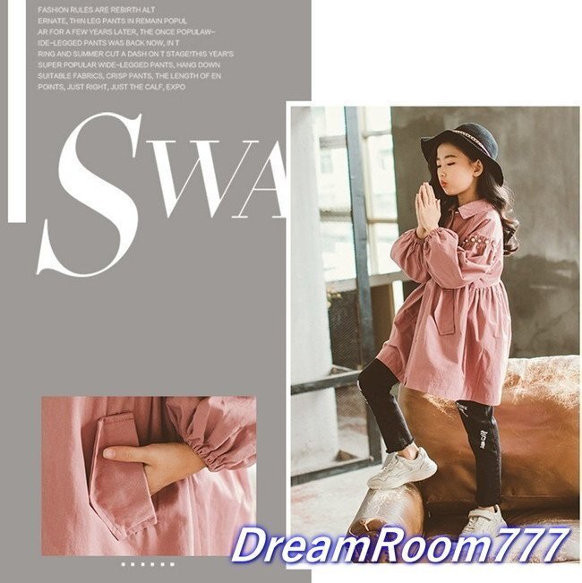 【110cm】バルーン スプリングコート ピンク アウター ジャケット 子供服 女の子 韓国子供服 モッズコート 秋 春物
