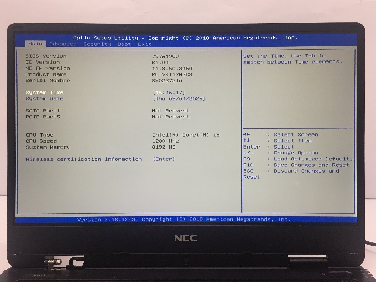 ジャンク/ NEC PC-VKT12HZG3 Intel Core i5-7Y54 メモリ8.19GB ストレージ無し 【K20778】