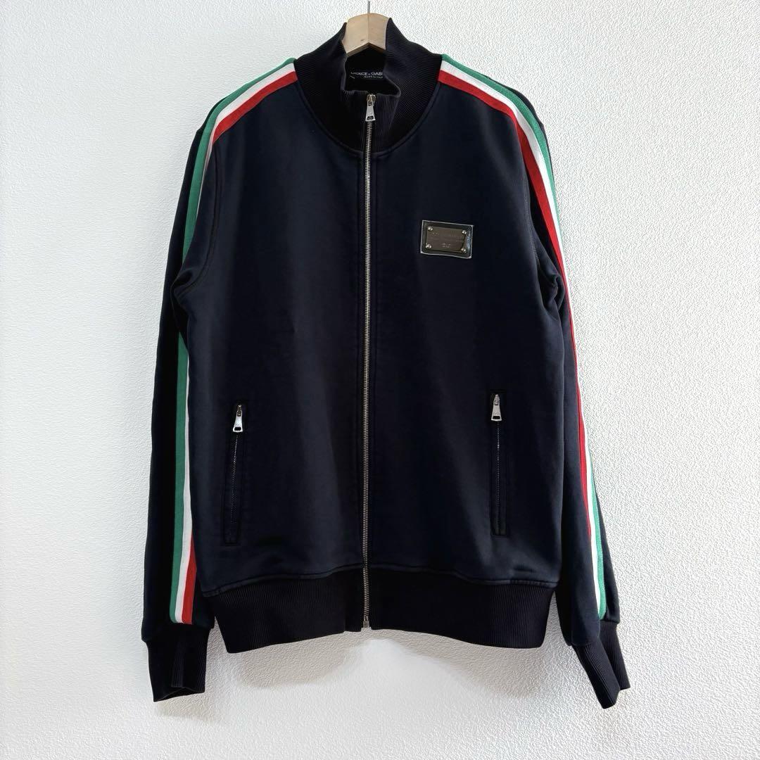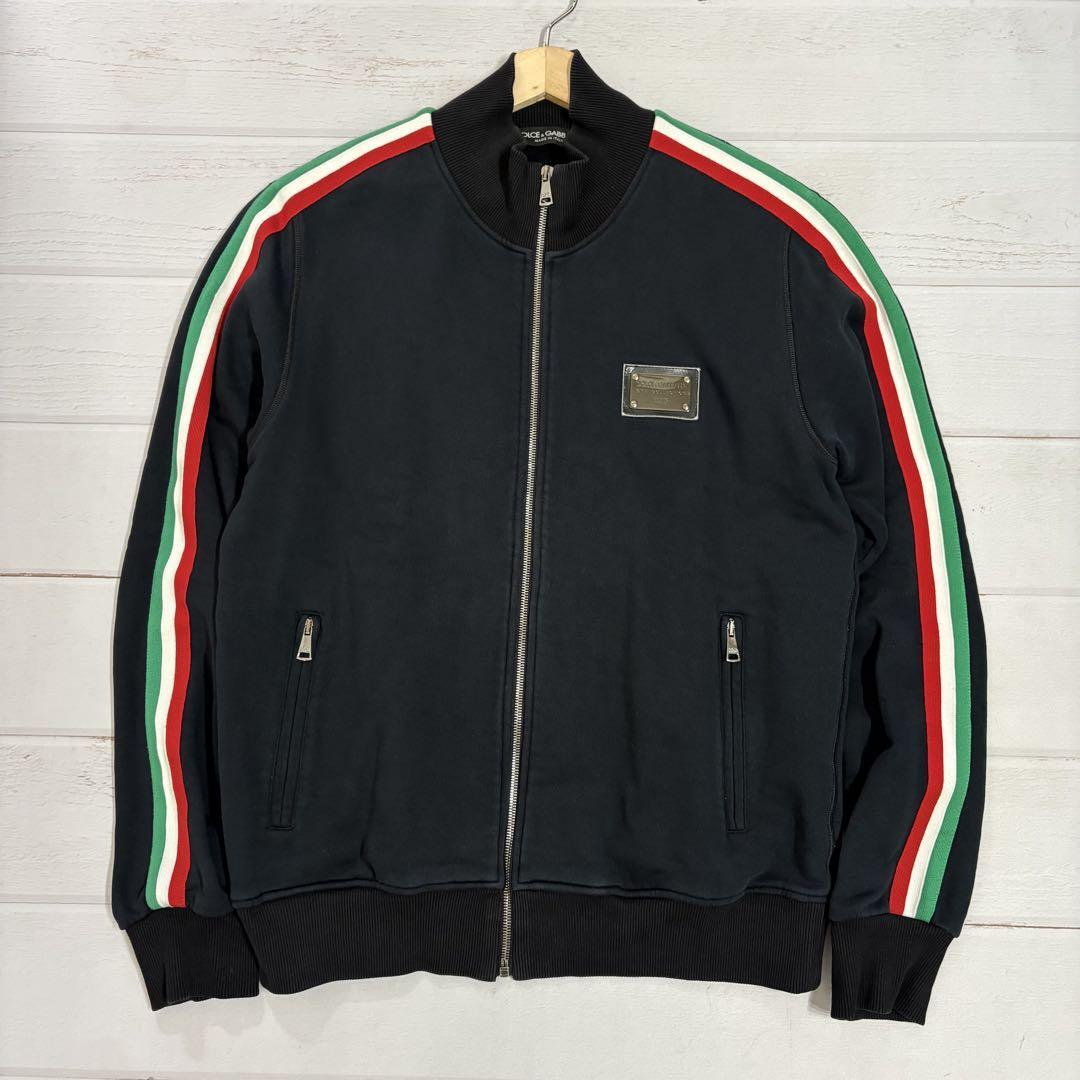 DOLCE&GABBANA トラックジャケット ジャージ ジップ ブルゾン ロゴプレート 黒 ブラック メンズ 大きい イタリア製 ドルチェ&ガッバーナ