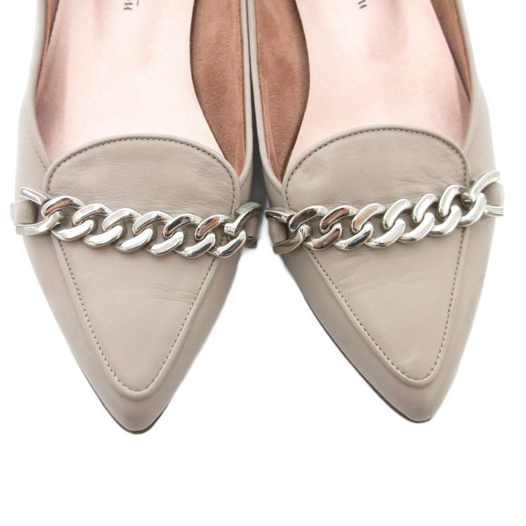 銀座かねまつ GINZA Kanematsu フラットパンプス ローファー レザー チェーン 25cm チャコールグレー /JS ■YHS2 レディース
