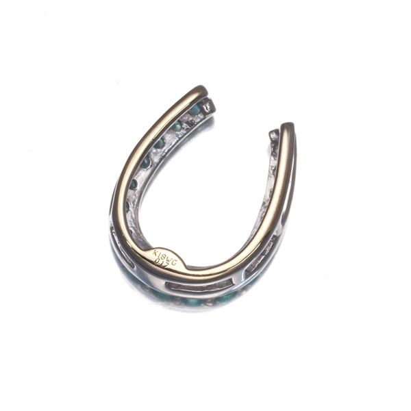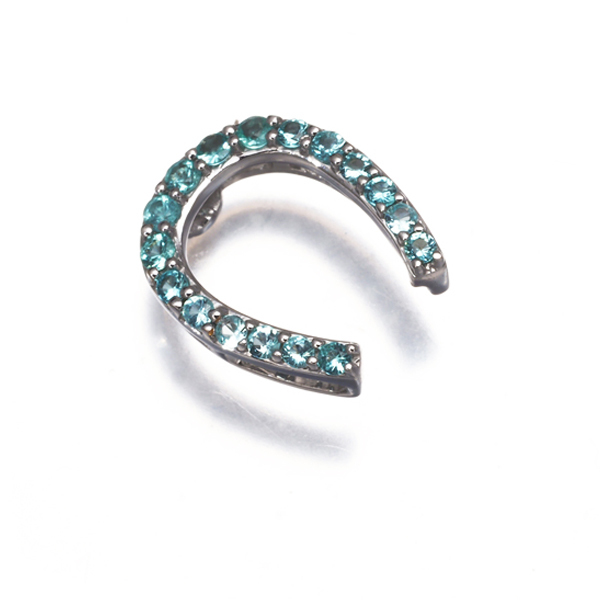 淡い雰囲気ながらも鮮やかな煌めきを奥から魅せる希少宝石パライバトルマリンを飾ったホースシューペンダントです。 |