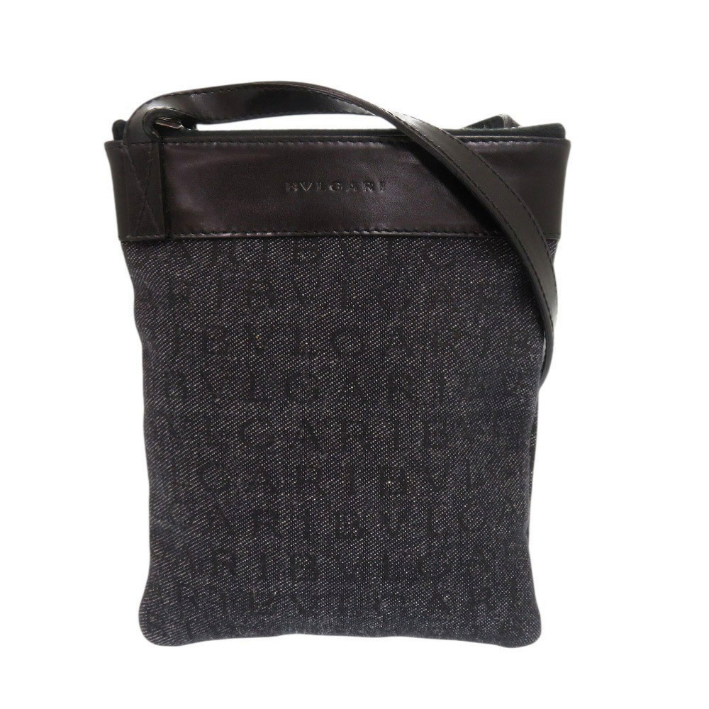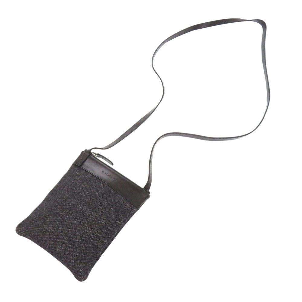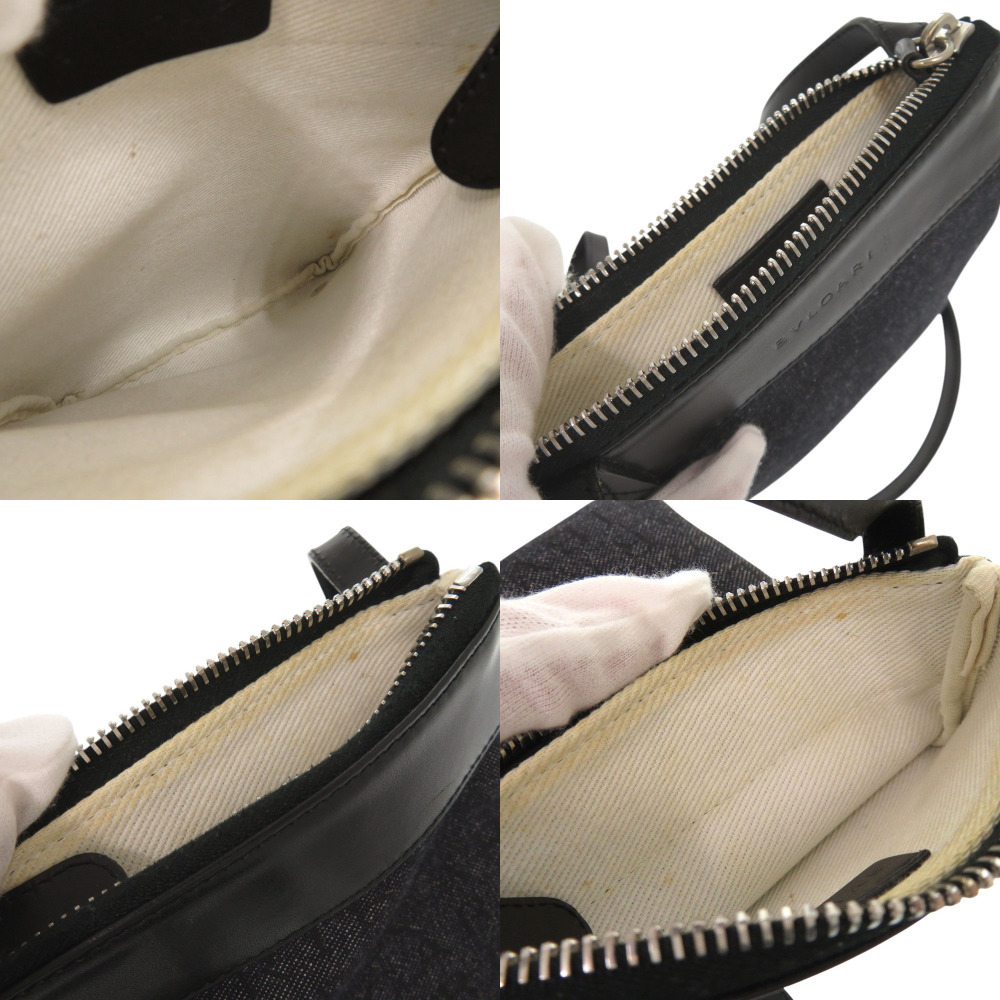 ブルガリ キャンバス レザー ネイビー系 ショルダーバッグ ポシェット 1610 BVLGARI