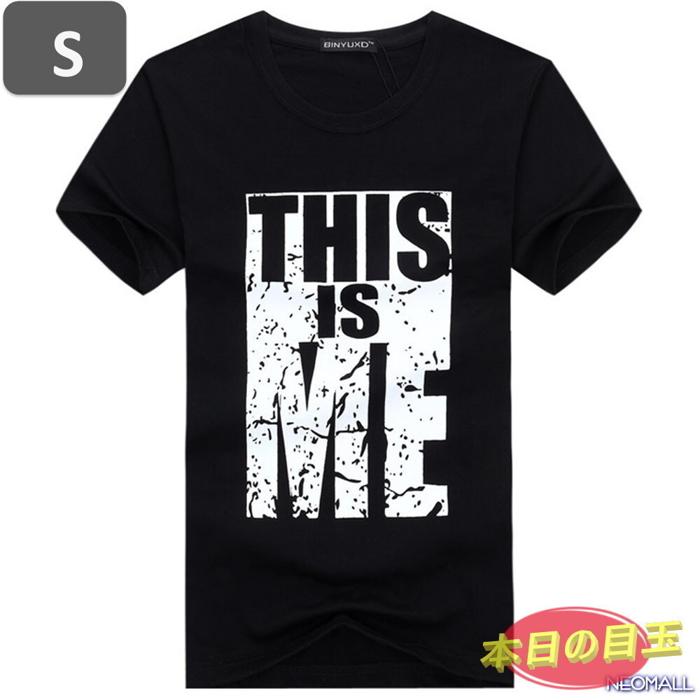 本日のお買得 ☆ 丸首 半袖 Tシャツ【464】 ブラック Sサイズ トップス シャツ シンプル イラスト デザイン 春夏