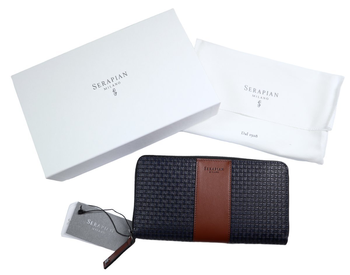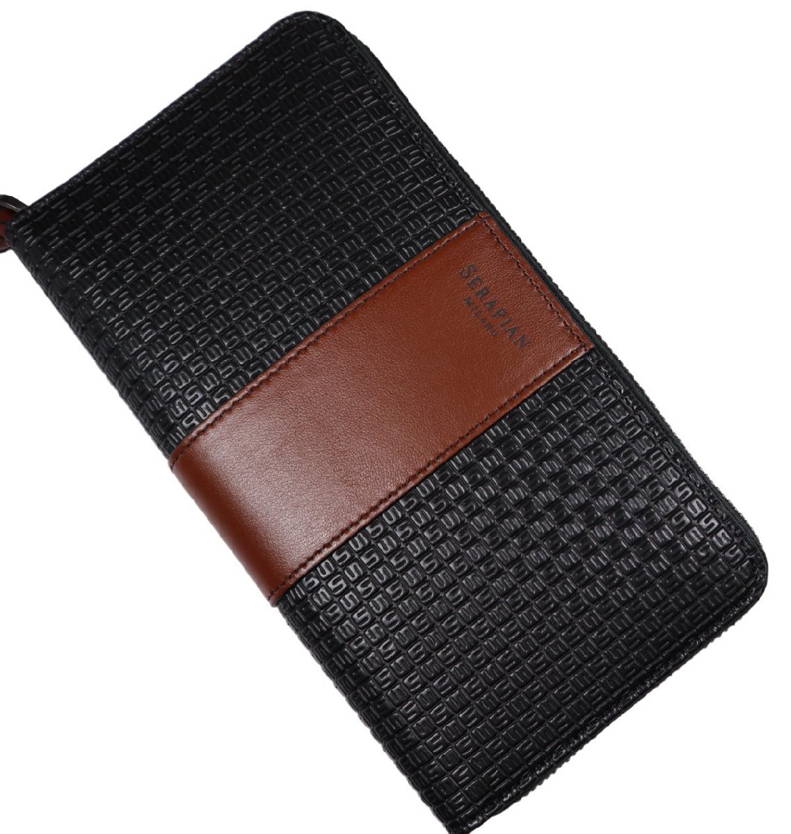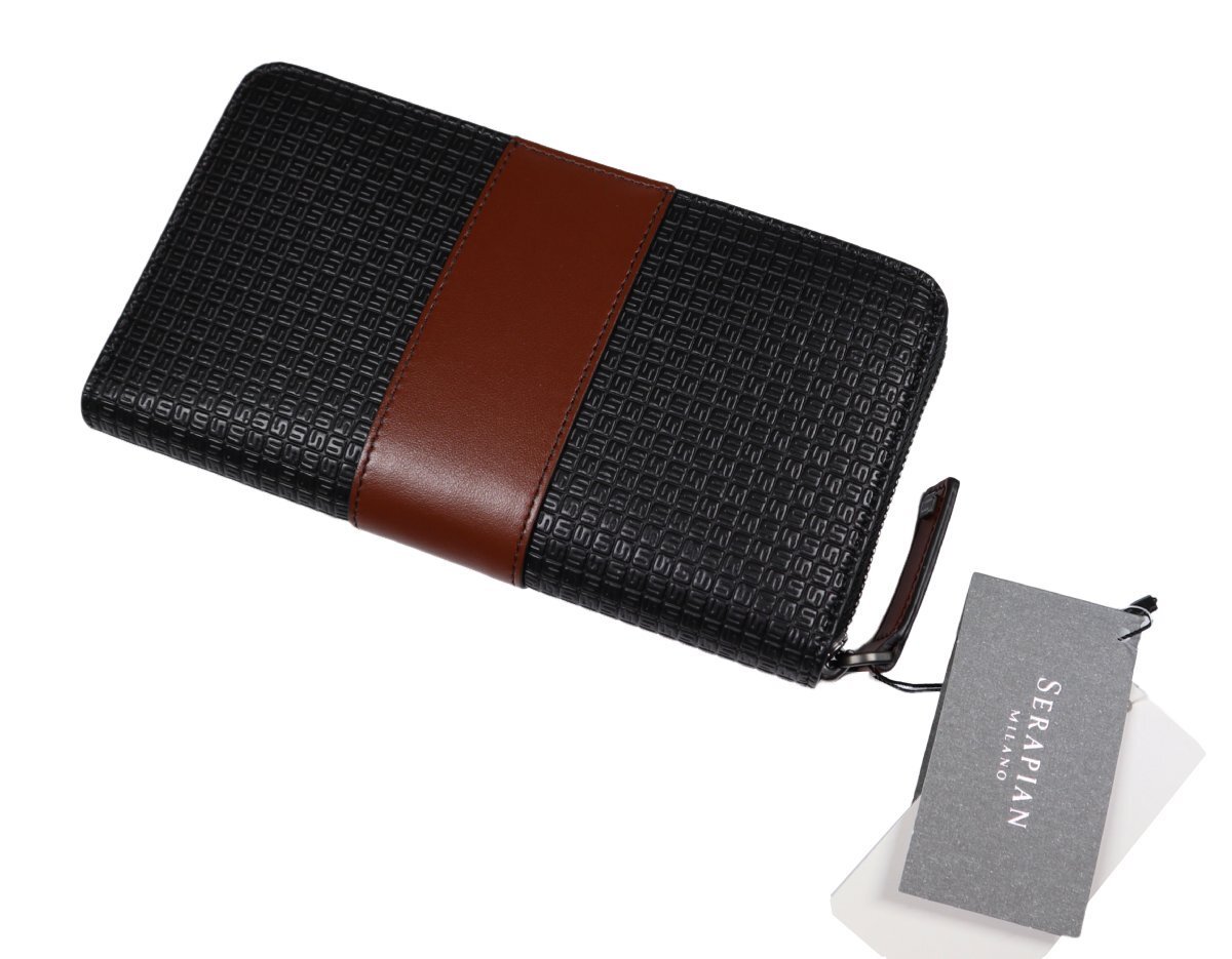ラグジュアリーな長財布!【 SERAPIAN / セラピアン (伊 】黒ステパン×茶レザーのラウンドジップウォレット / 収納力が抜群!
