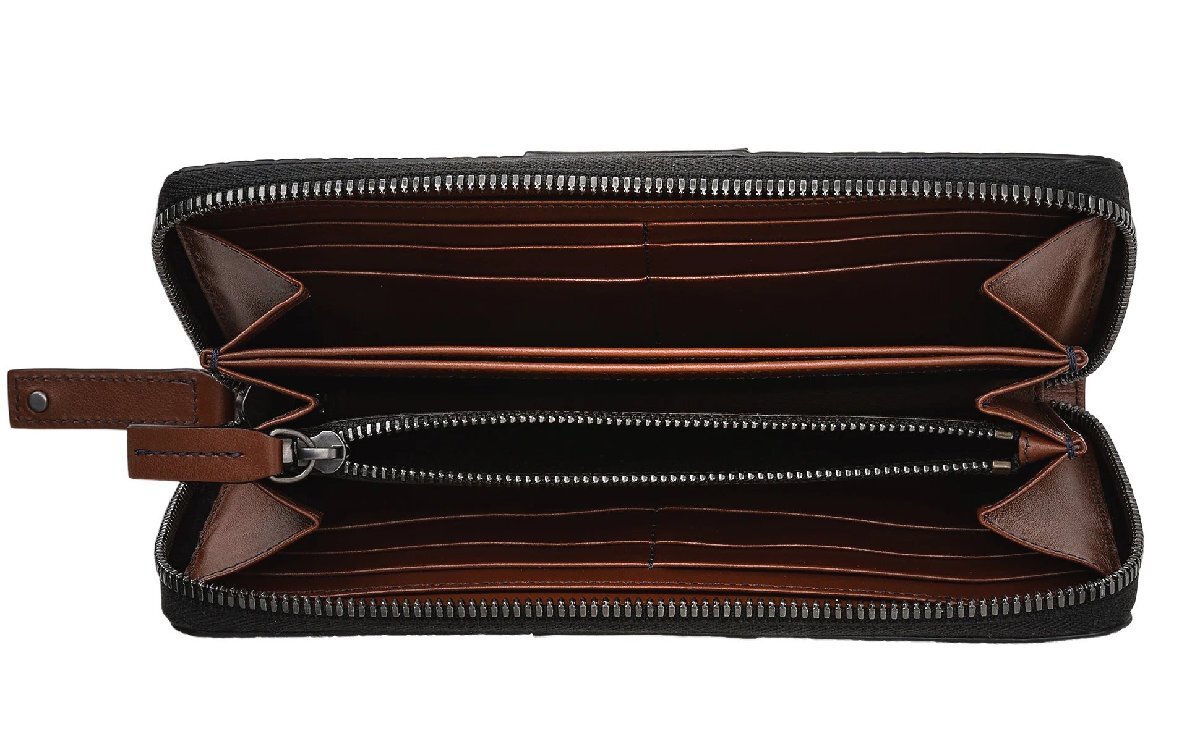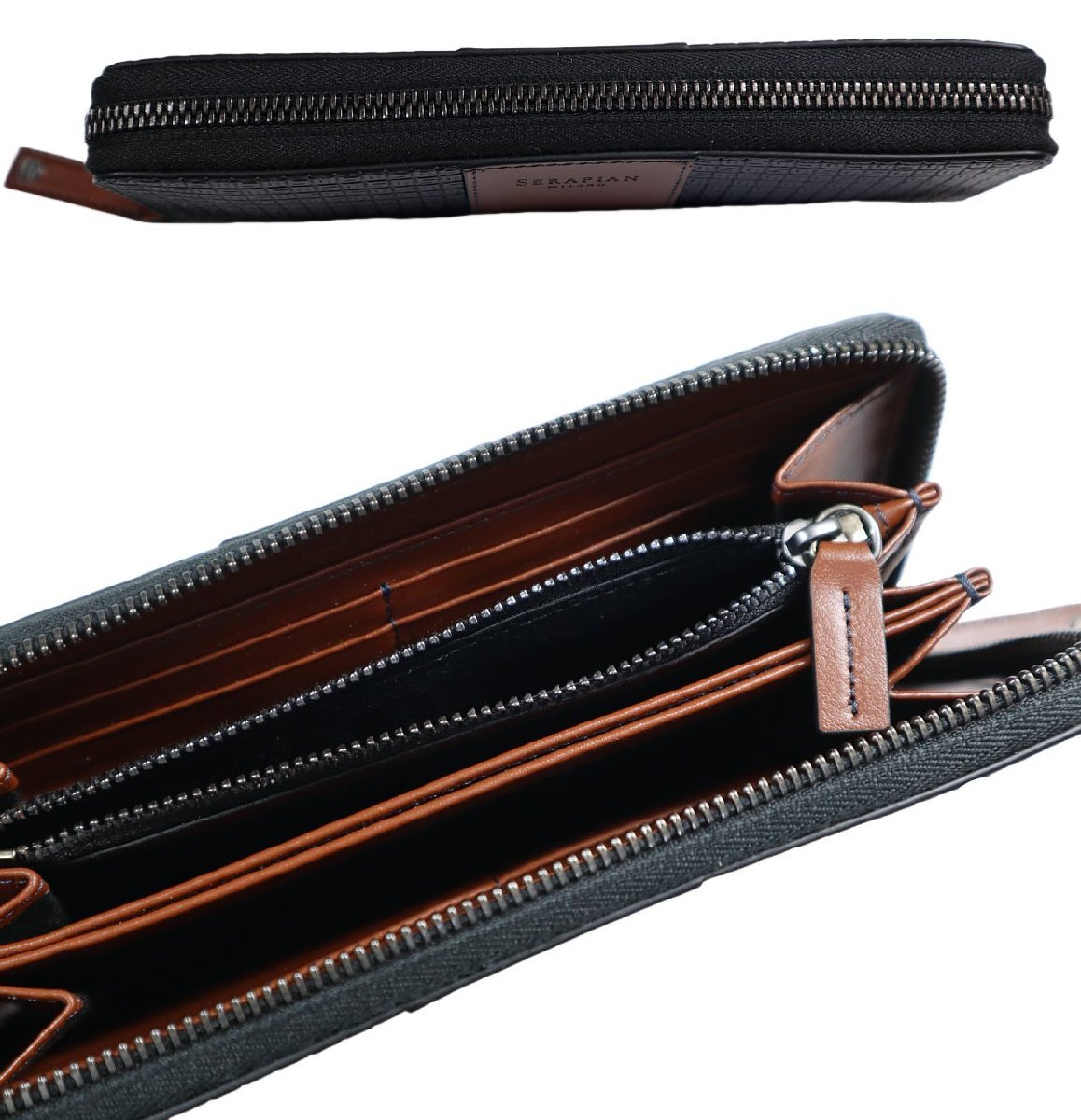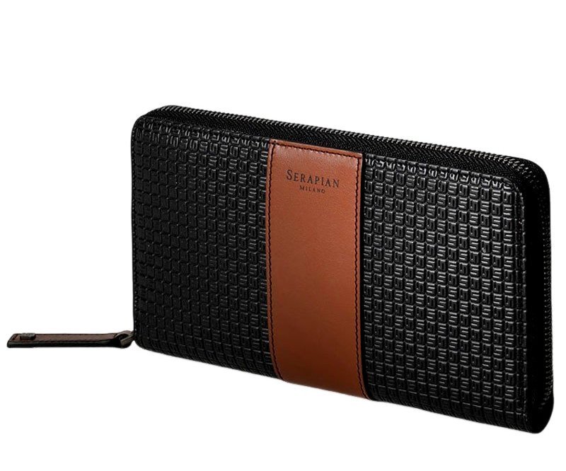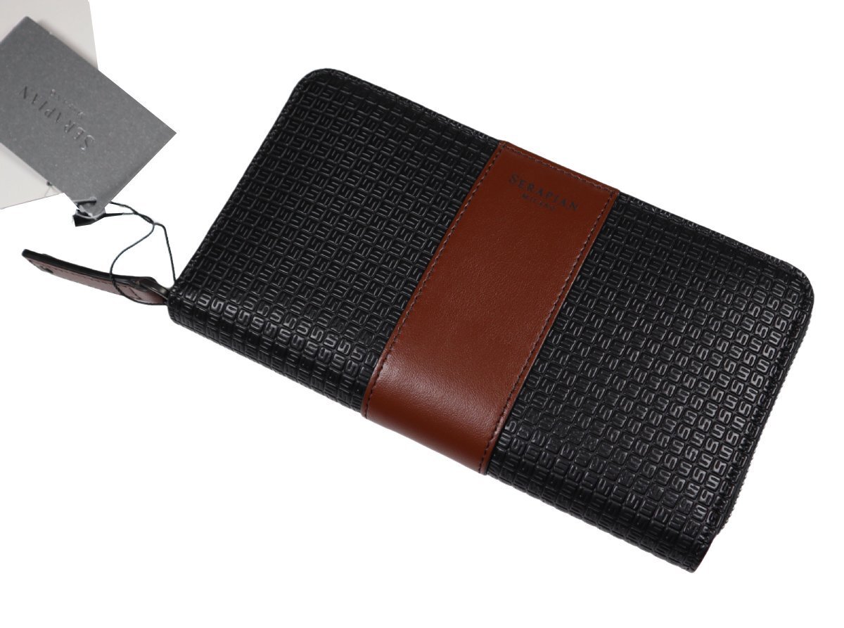 ラグジュアリーな長財布!【 SERAPIAN / セラピアン (伊 】黒ステパン×茶レザーのラウンドジップウォレット / 収納力が抜群!