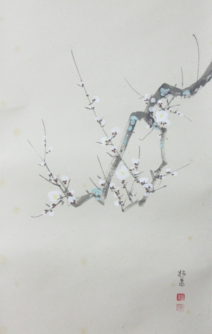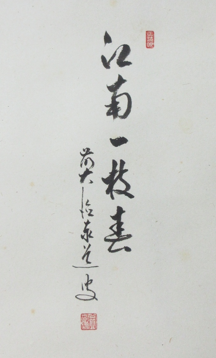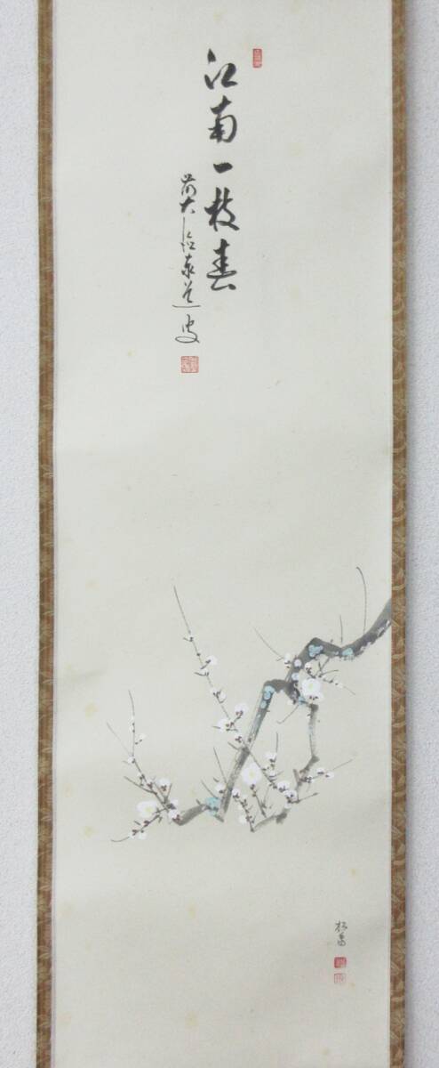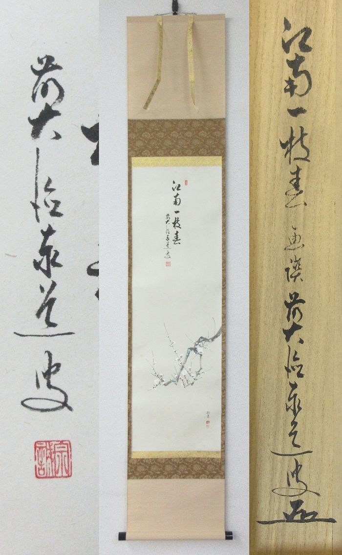 【B0441】茶道具 茶掛 掛軸 田中松泉 画 梅之図 大徳寺派 瑞龍山 雲澤禅寺 足立泰道 画賛 『江南一枝春』 共箱 送料無料