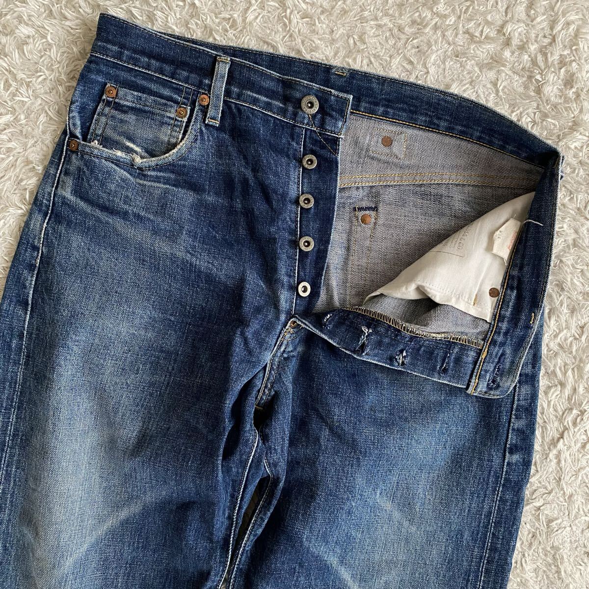 多少の擦れ等ありますが、ヴィンテージデニムの味わいとしてお楽しみください。
