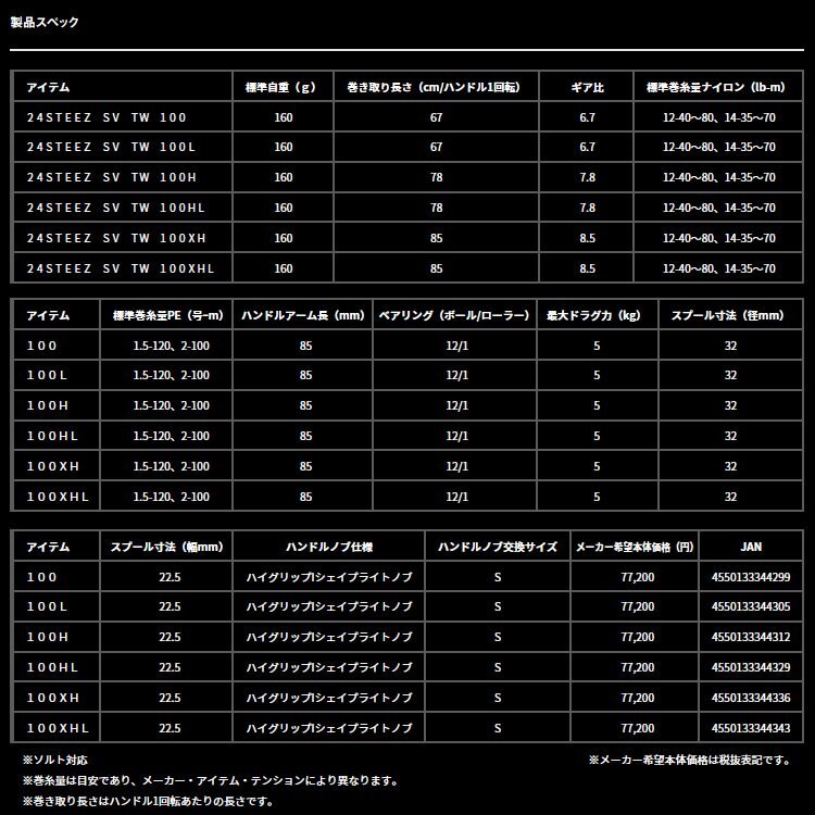 | 商品名 | 新品 ダイワ 24スティーズ SV TW 100 釣り具 ベイトリール STEEZ | ||||