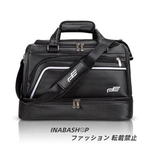 ゴルフトートバッグ 二層式 ラウンドトート PUレザー 2WAY シューズポケット付き ショルダー付き 防水 大容量 ジム 旅行 出張 ブラック