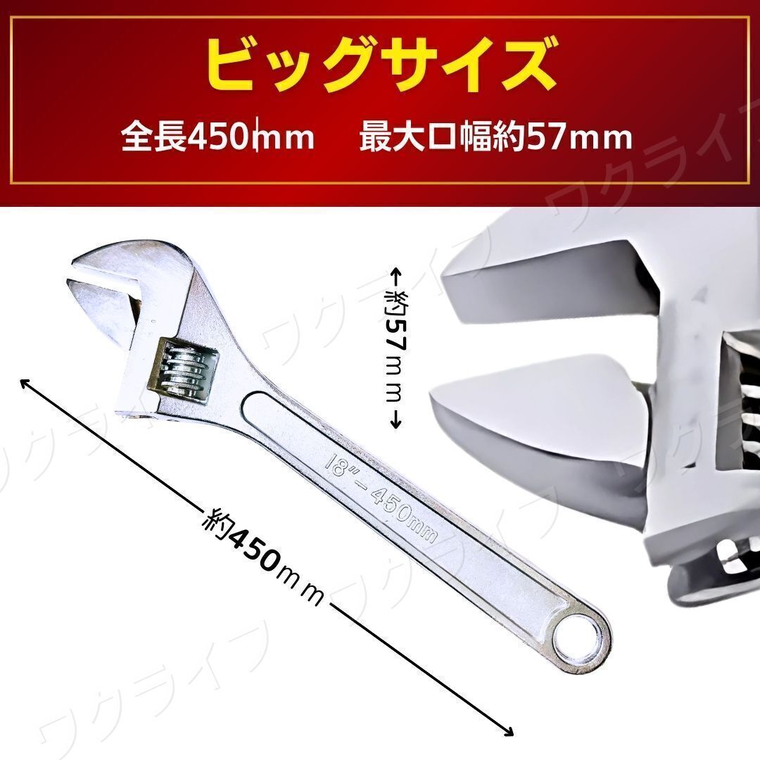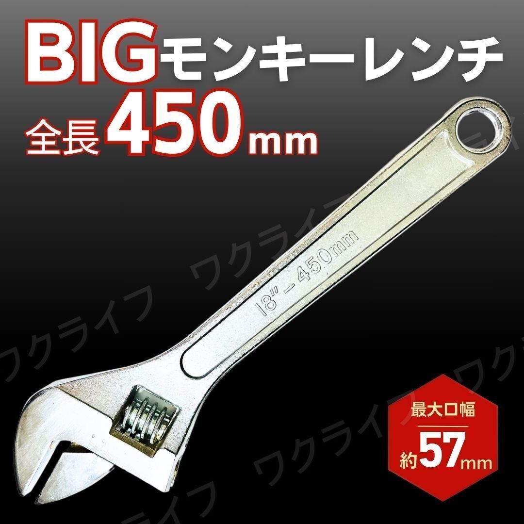 モンキーレンチ 450mm スパナ ビッグサイズ 57mm 特大 大型 プロ用 業務用 工具 大きい ボルト ナット ツール 重機 機械工具 配管 整備