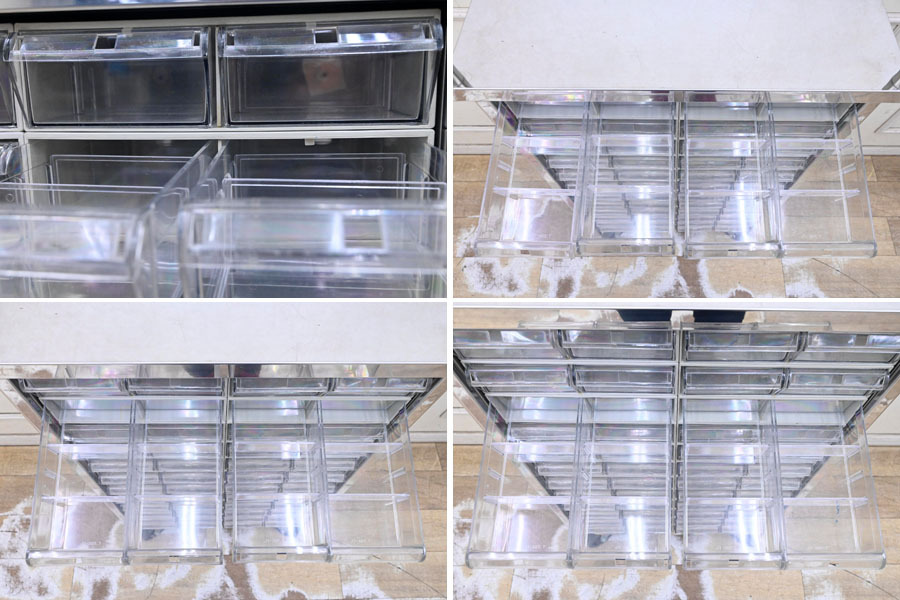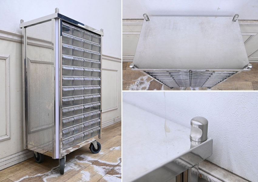 ----------------------------------------------------------------------------------------- ●送料や注意事項は必ずご確認下さい。落札後にトラブルになるケースが増えております。● ◆コンディションは写真・文章にて記載して有りますが、全てのキズの写真は掲載致しておりません。大きなダメージを除き見落とし、記載漏れが有る事はご了承下さい。 ◆当サイトにて出品する商品は多種多彩で、当方商品知識の無い物も多数ありますので落札後の質問やメンテナンス等にはお答えできません。 ◆入札された時点で、画像、文章をご理解していただいたものと判断させていただきます。不明な点は前もってQ&Aからお願い致します。入札後の質問やお電話等でのキャンセルは一切受け付け致しません。 ◆商品説明に「ノークレーム」と記載しているものに関しては、如何なる状況で届いても保証致しません。詳しくは注意事項の「商品到着後について」の最後に記載しておりますのでご確認下さい。 ---------------------------------------------------------------------------------------- アズワンと思われますが、記載が無いので断定は出来ません。 サイズからしても間違いないと思いますが、上記ご理解の上、ご入札お願い致します。 中古品ですのでキズ、線キズ、シミ、クスミ、引出汚れ、テープ跡、引出数か所ネームプレートのカバー無し、内部の仕切り板無し、ストッパー欠け等有ります。 幅62 奥36 高102.5(106)cm | ||