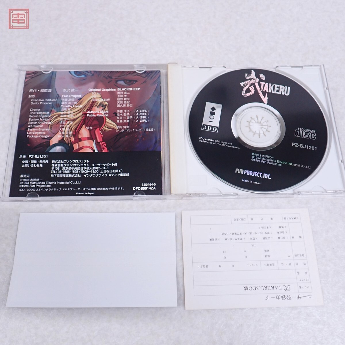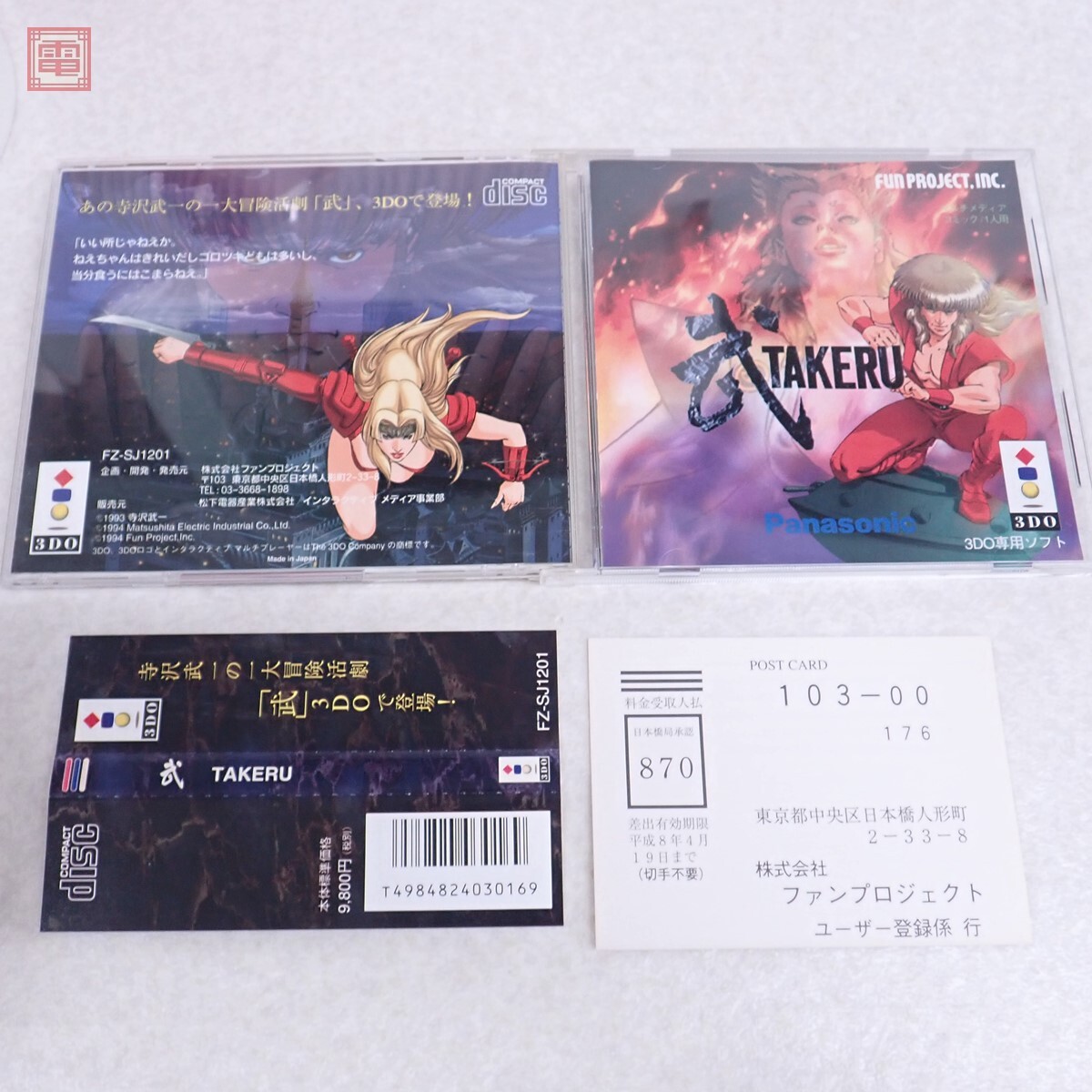 動作保証品 3DO 武 TAKERU ファンプロジェクト FUN PROJECT.INC. 箱説帯ハガキ付 こちらの商品は動作保証品となりますので、一週間の動作保証をお付けします。 ■ケースにスレ、キズがあります。 ■盤面に目立ったキズはありません。 ■写真のものが全てです。付属物の有無や状態については写真からご判断ください。 ■チェックに使用したモニターやチェック機器等は、特に表記がない限りは付属いたしません。 ■商品到着後、当店の保証期間中は、商品及び箱や取説、付属品などを1つでも廃棄や破損をしないようにお願い致します。廃棄や破損をした場合、商品に問題があった場合でも対応や返金などの対処ができなくなります。 | |||