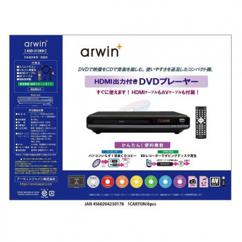 仕様 | マークの種類:PSE 届出事業者名:アーウィンジャパン株式会社 電源:家庭用AC100V、50/Hz 消費電力:約11W、待機時:約1W 入出力端子:音声/映像出力、USB(2.0)入力、HDMI出力(Ver1.3) 対応ディスク:DVD&CD/-R-RW(CPRM/VR含む) フォーマット:DVD-Video(市販品)、VCD、DVD-CPRM/VR、CD-DA、MP3、JPEG USB:2.0対応 容量最大:32GB対応 リモコン電源:単4形(1.5V)×2 推奨温度:動作時、保管時0度?40度 |