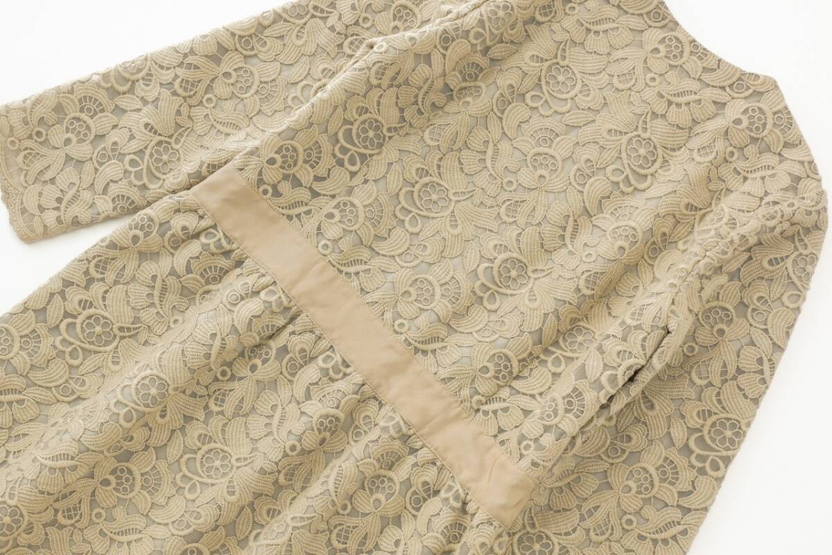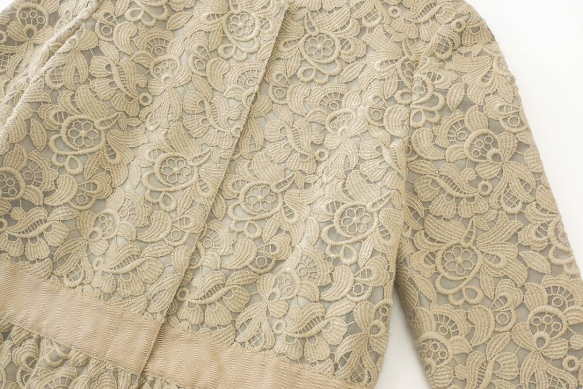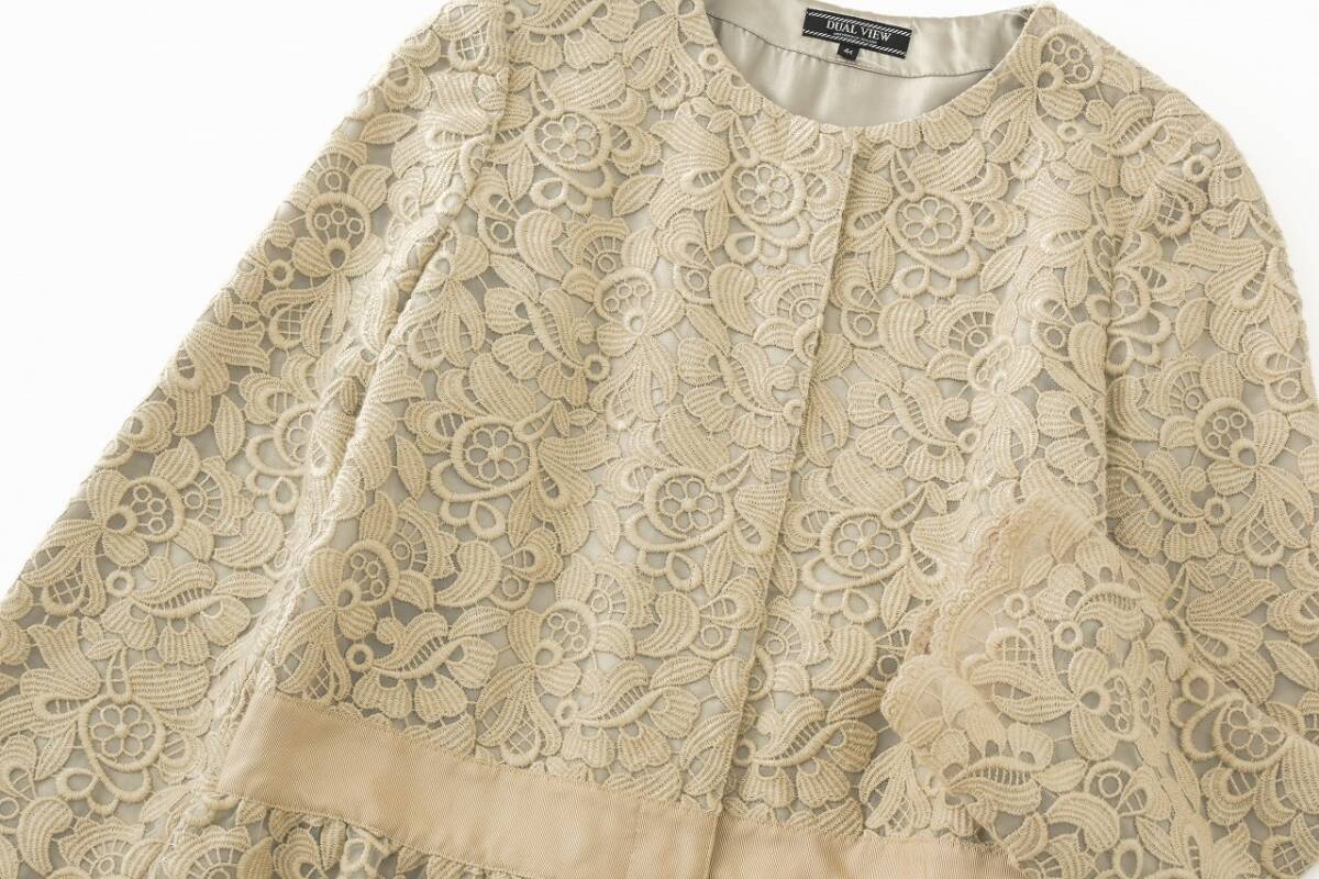 立体感のある華やかなレース素材を全体に使用したエレガントなコート。