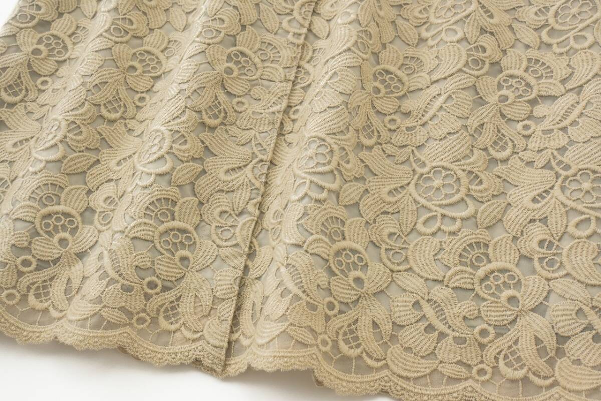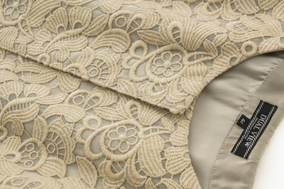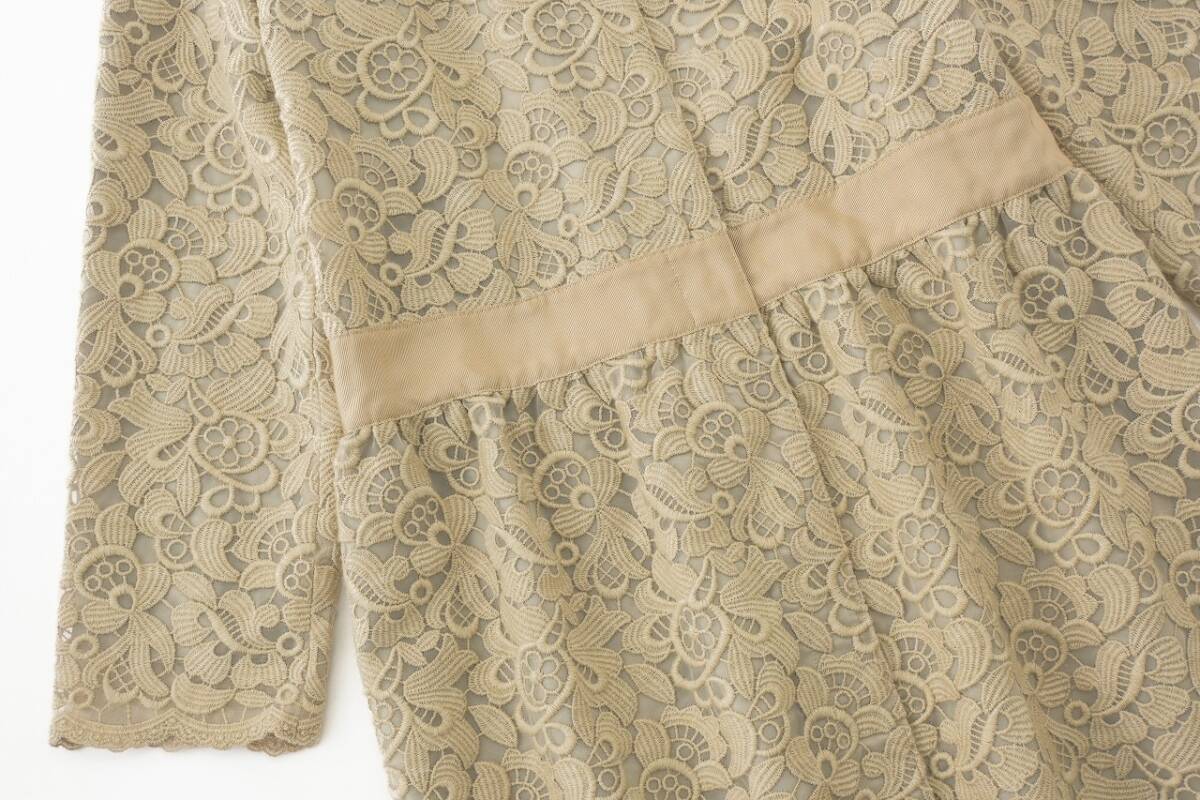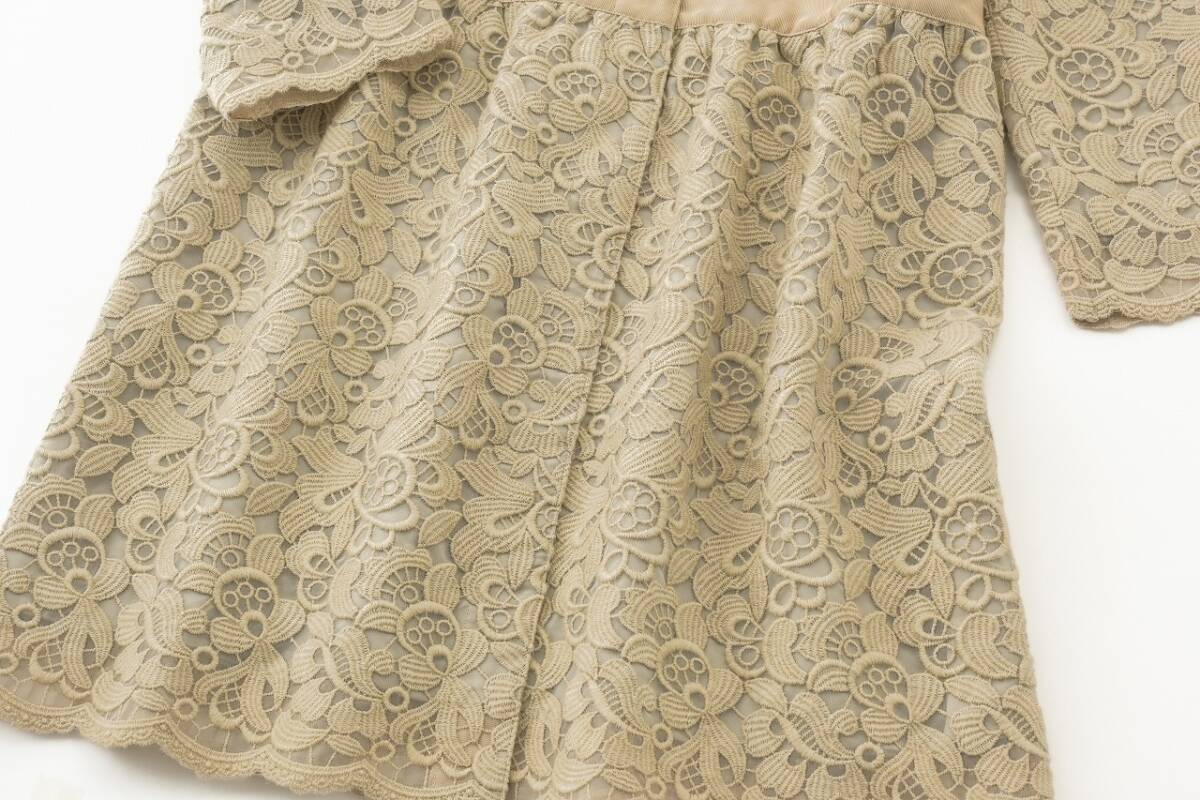 立体感のある華やかなレース素材を全体に使用したエレガントなコート。