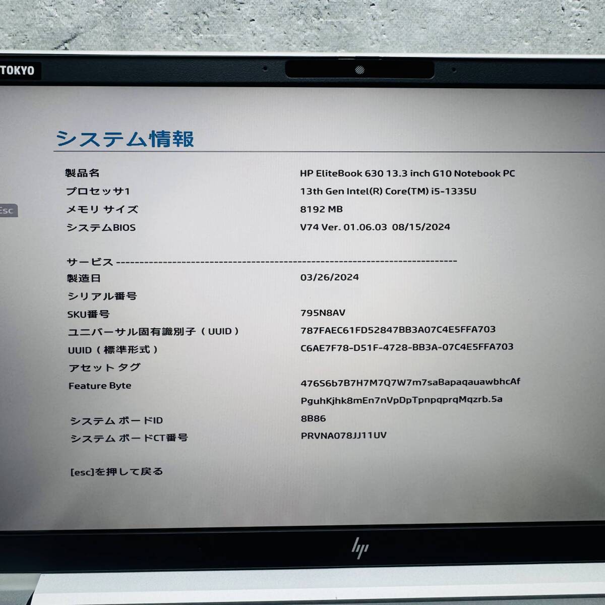 Su-25496. HP / EliteBook 630 13.3 inch G10 / Core i5-1335U / 第13世代CPU / 8GBメモリ / HDD無し / 13インチ / 通電確認・ジャンク | |