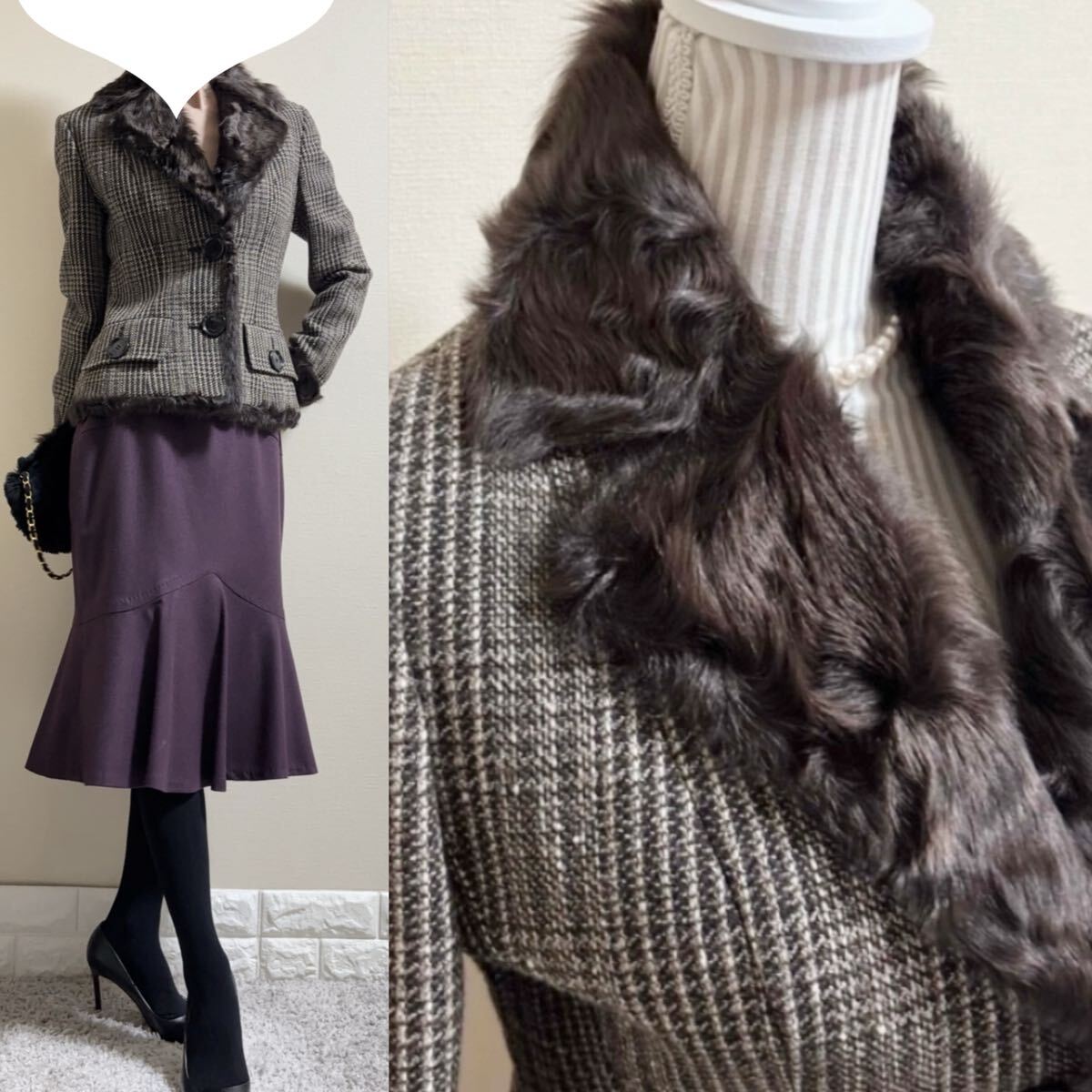 上質で華やかなゴートファーを使用したネップツイードジャケットです