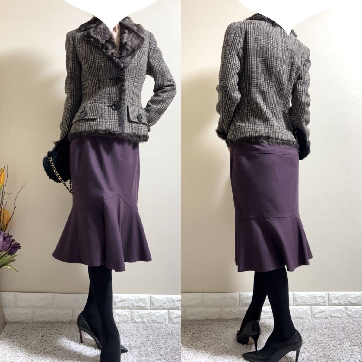 ステッチがアクセント。上質なウール カシミヤ アンゴラミックス素材が引き立つ高級スカートです
