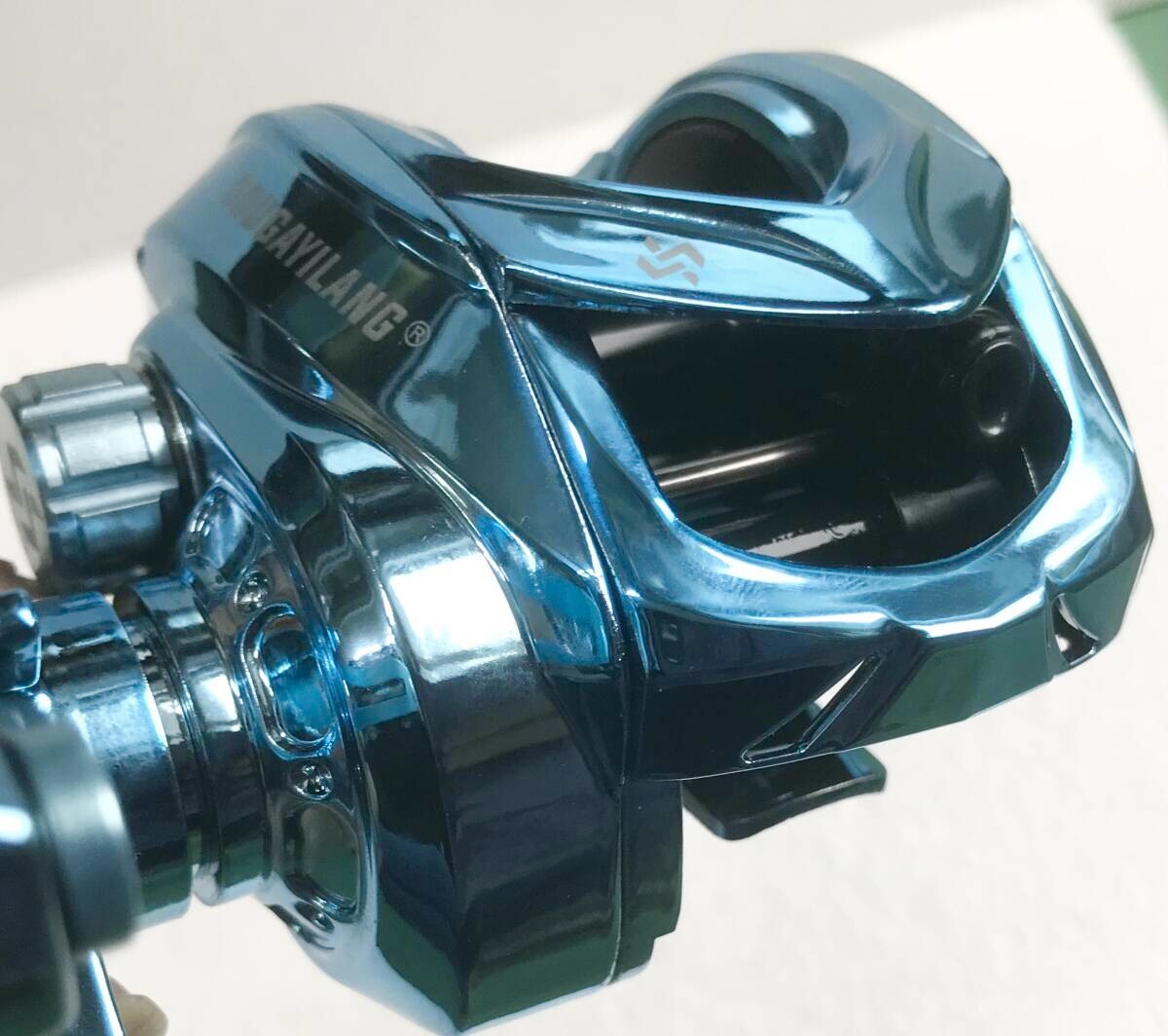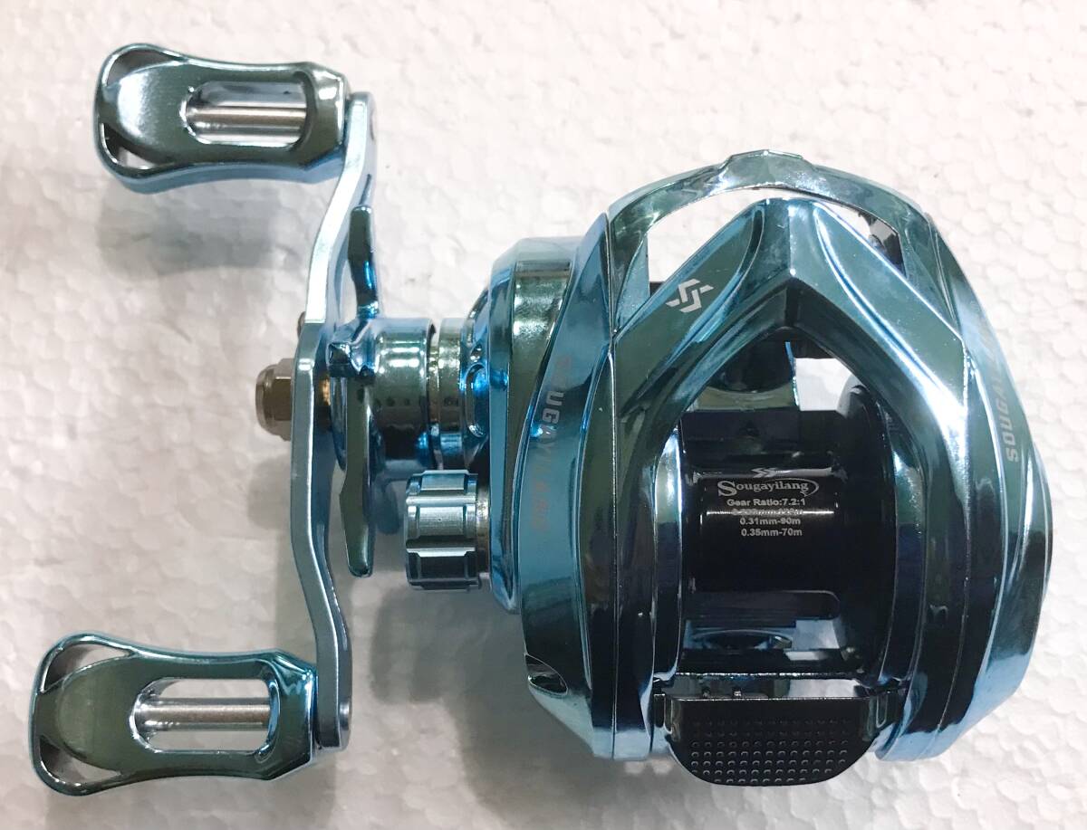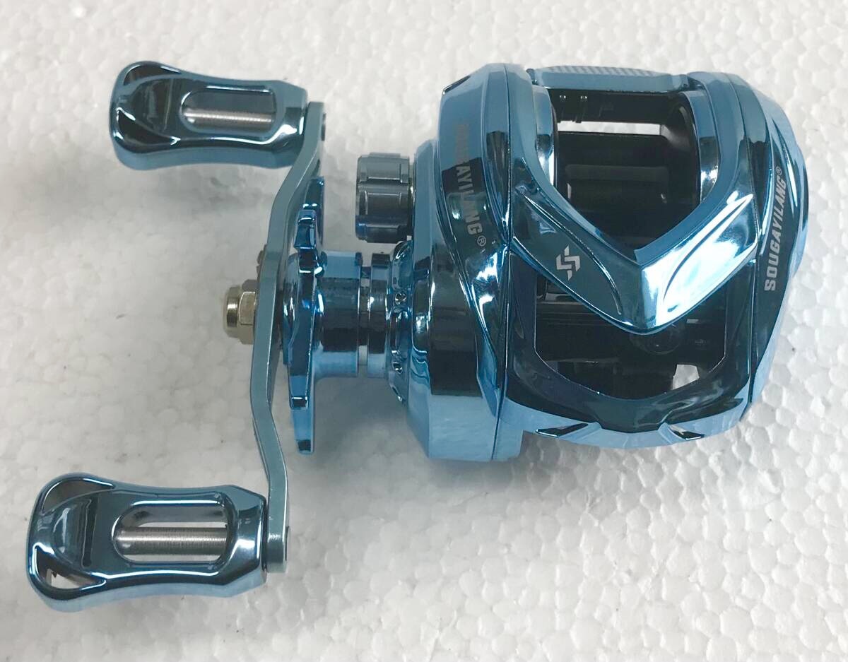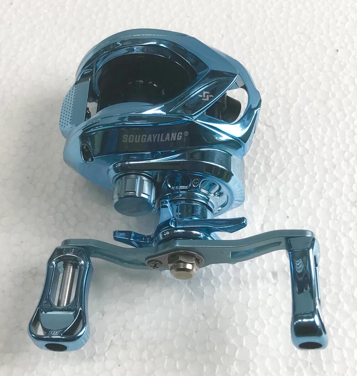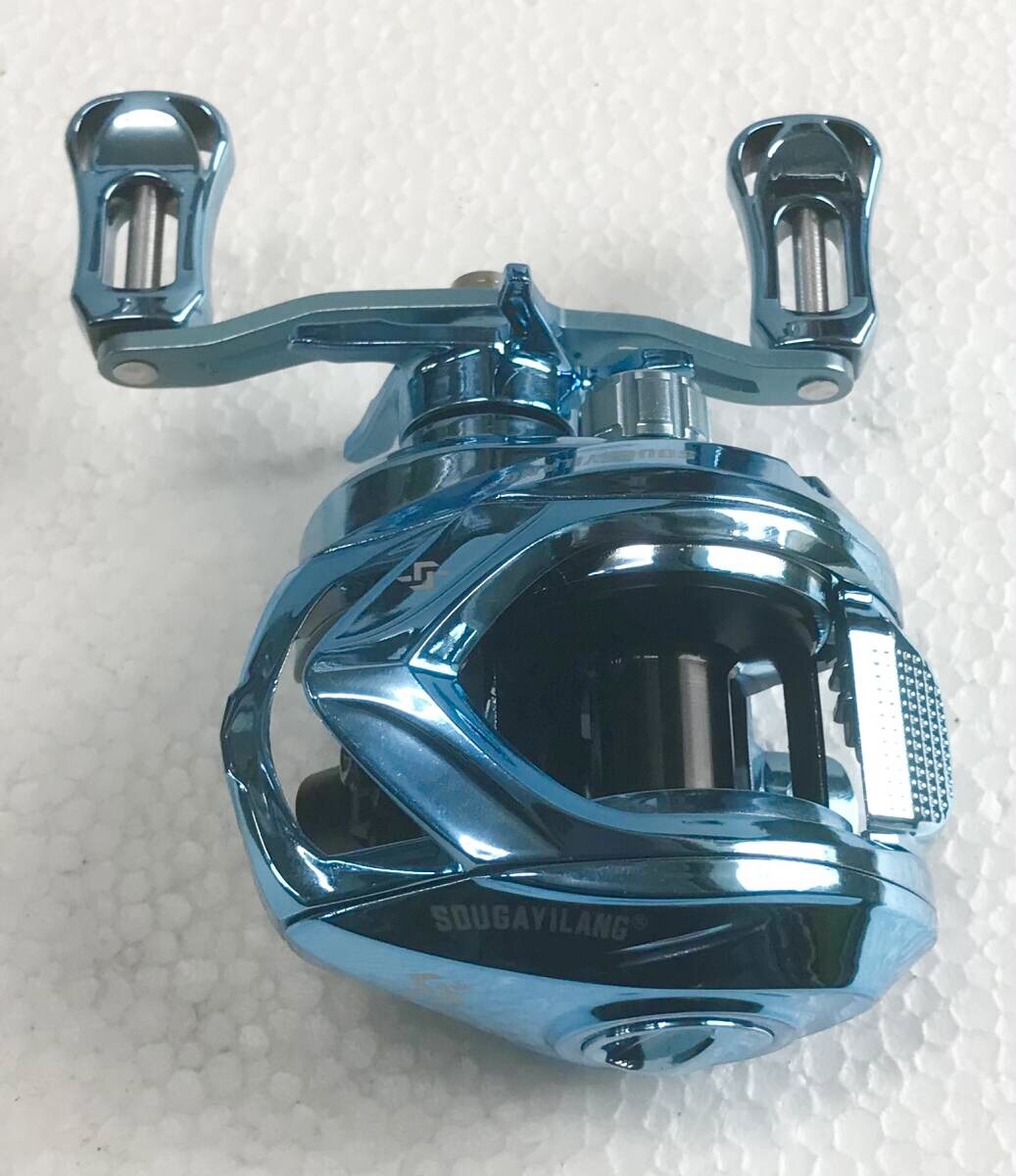 写真のSOUGAYILANGベイトキャスティングリール スペシャルカラークロームスカイブルー左ハンドル(新品未使用)を発送します(送料無料)。
