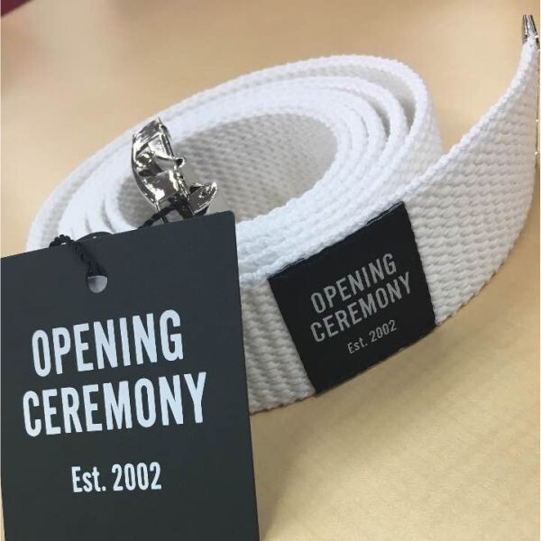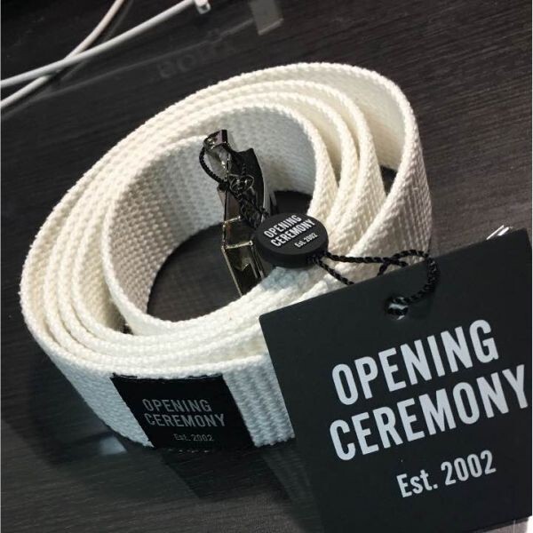新品タグ付の OPENING CEREMONY ガチャベルト(OCロゴ入り・白)です。