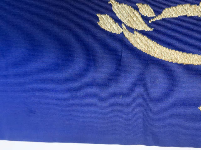 リサイクル商品の為、全体所々にしみ、ヤケがございますがご着用いただけると存じます。 地色は 紺です。 1枚目の画像が近いお色かと思われます。 素材は正絹です。 |