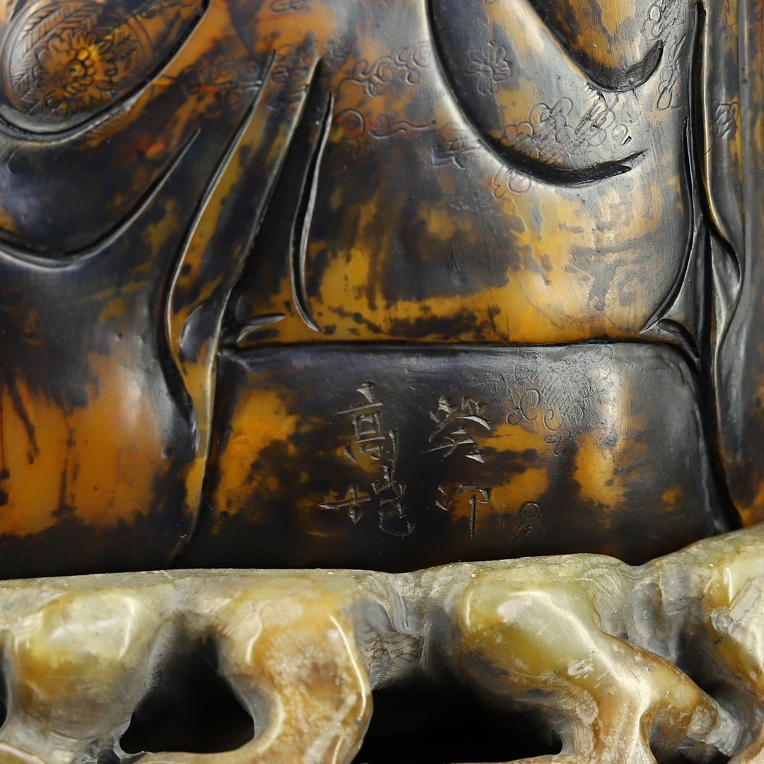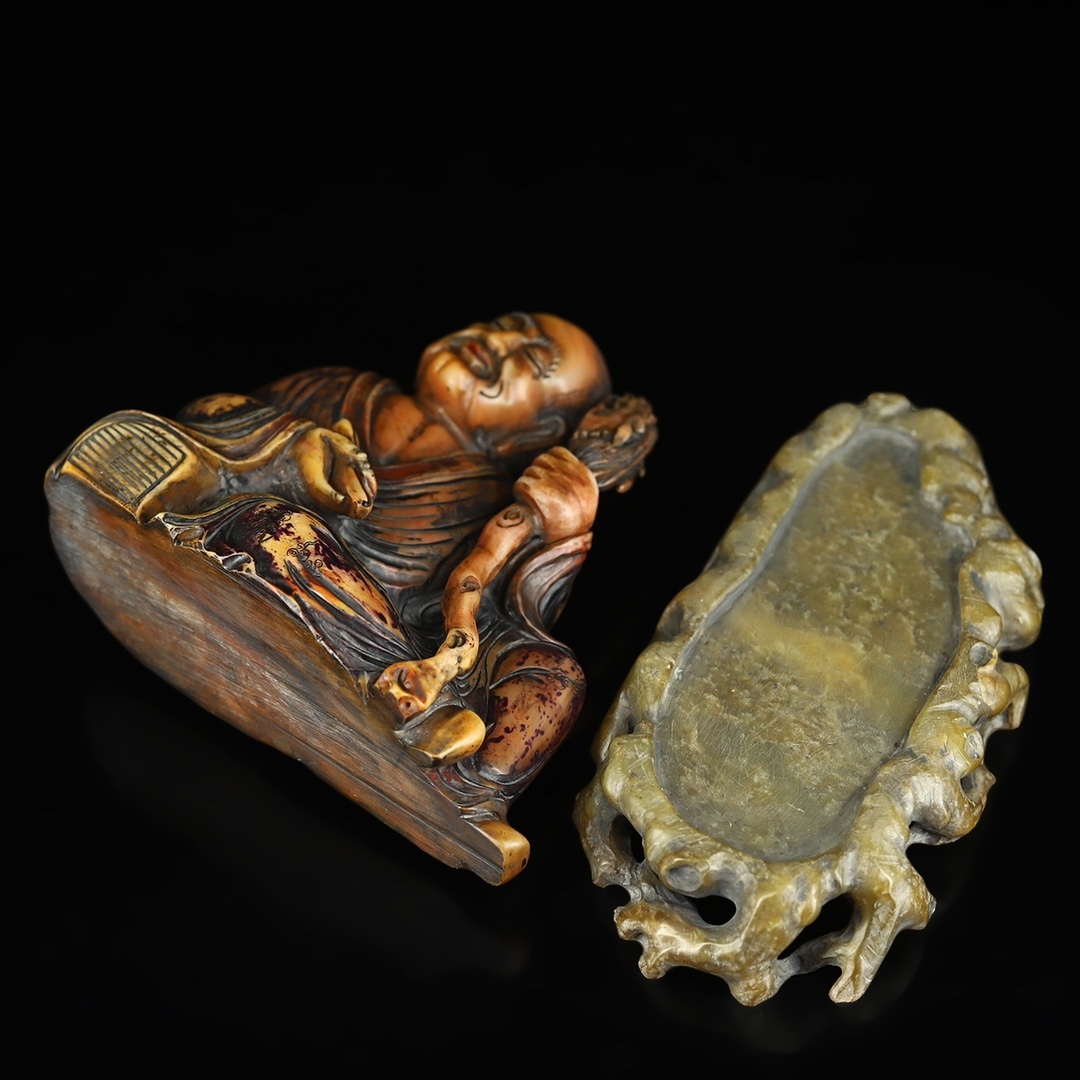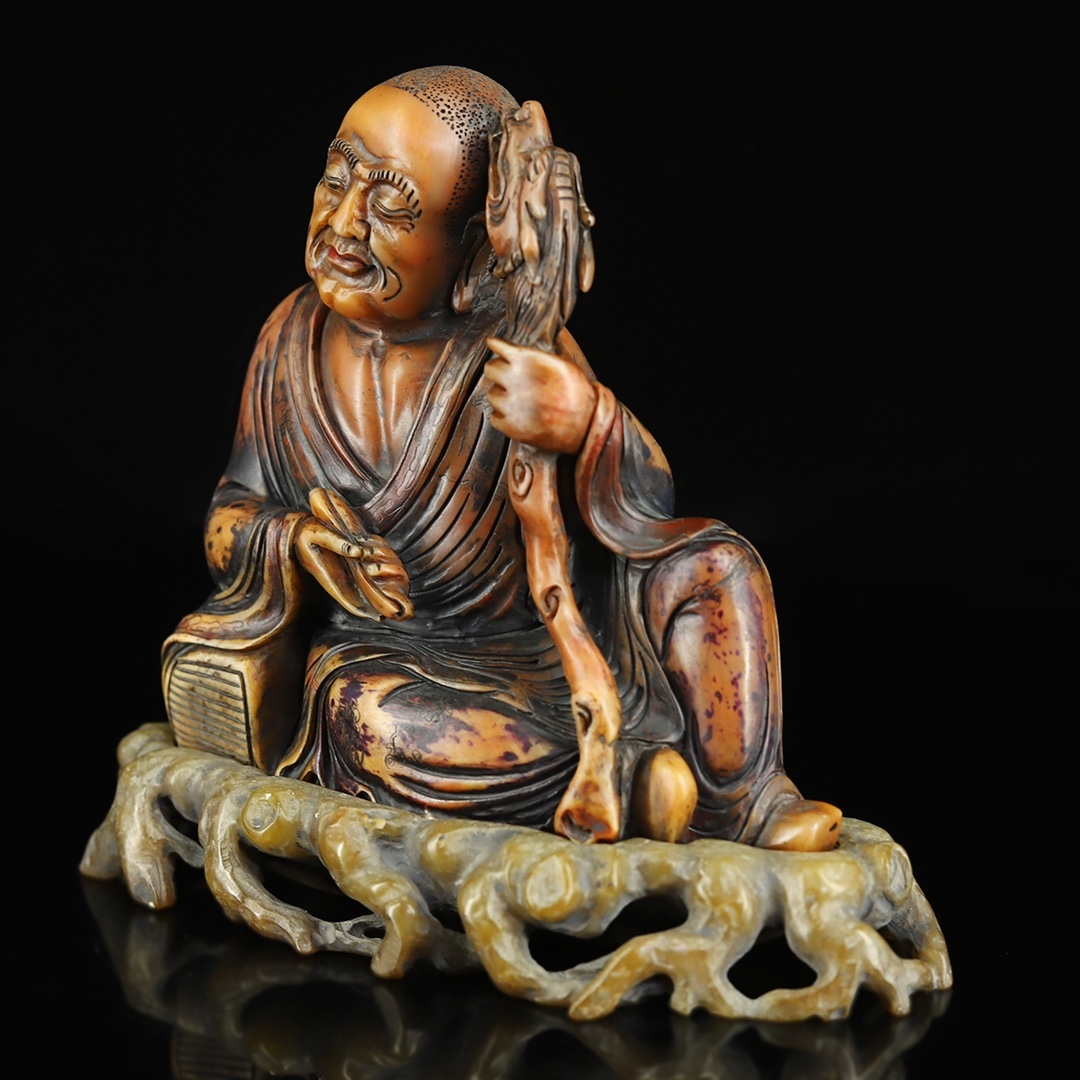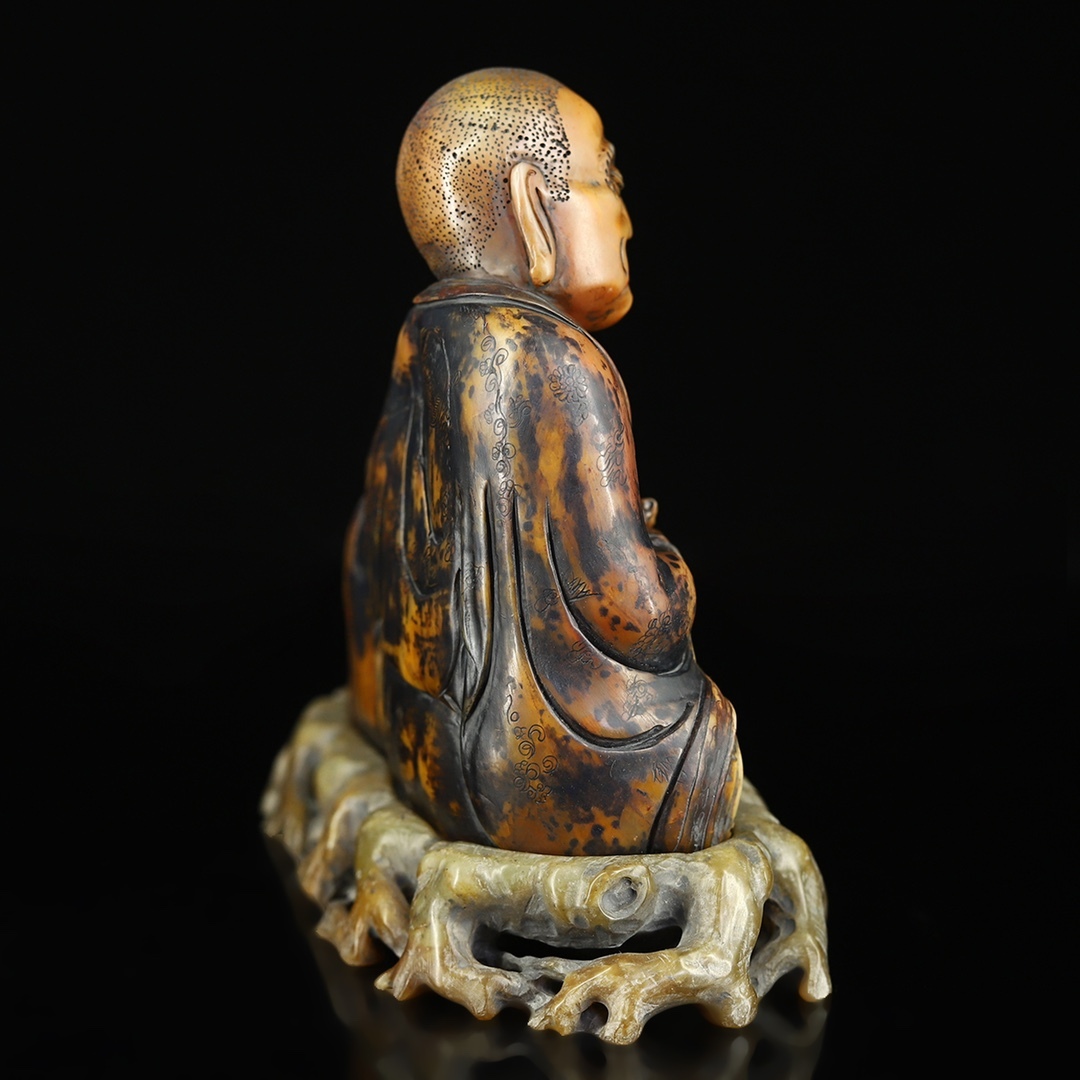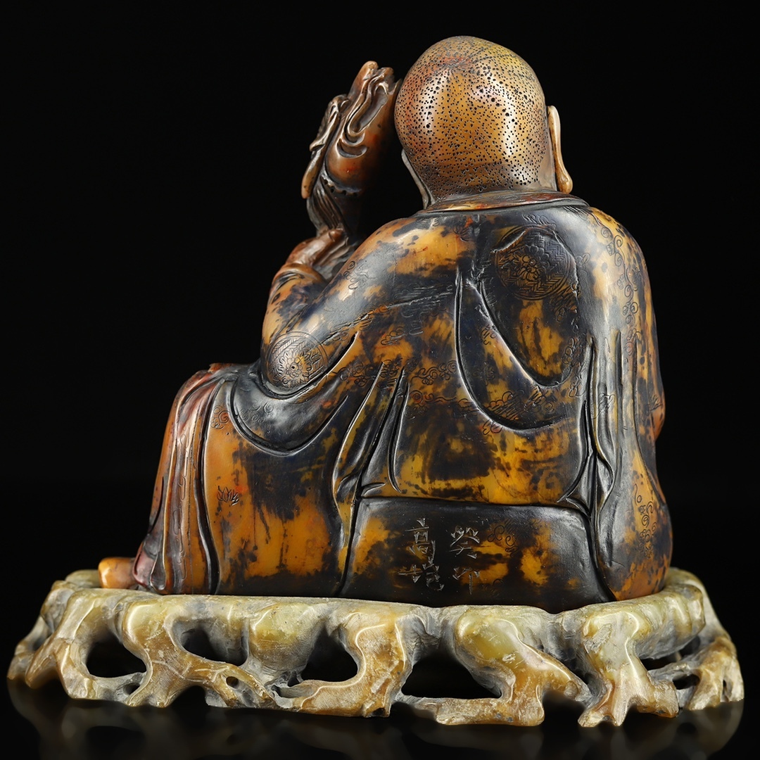寸法:羅漢帯寿山石台座長15.5 cm幅7 cm高さ13.5 cm、正味重量935 g