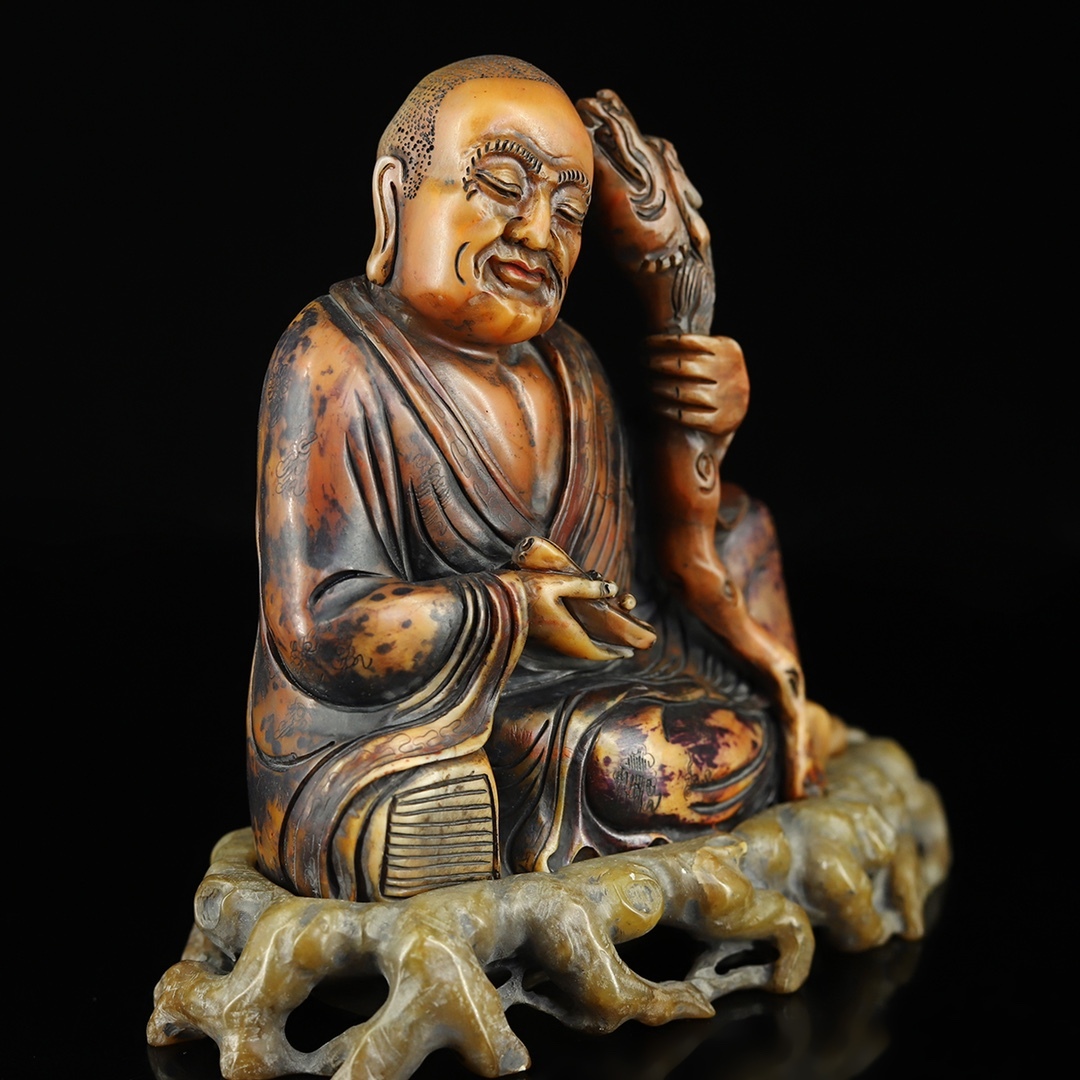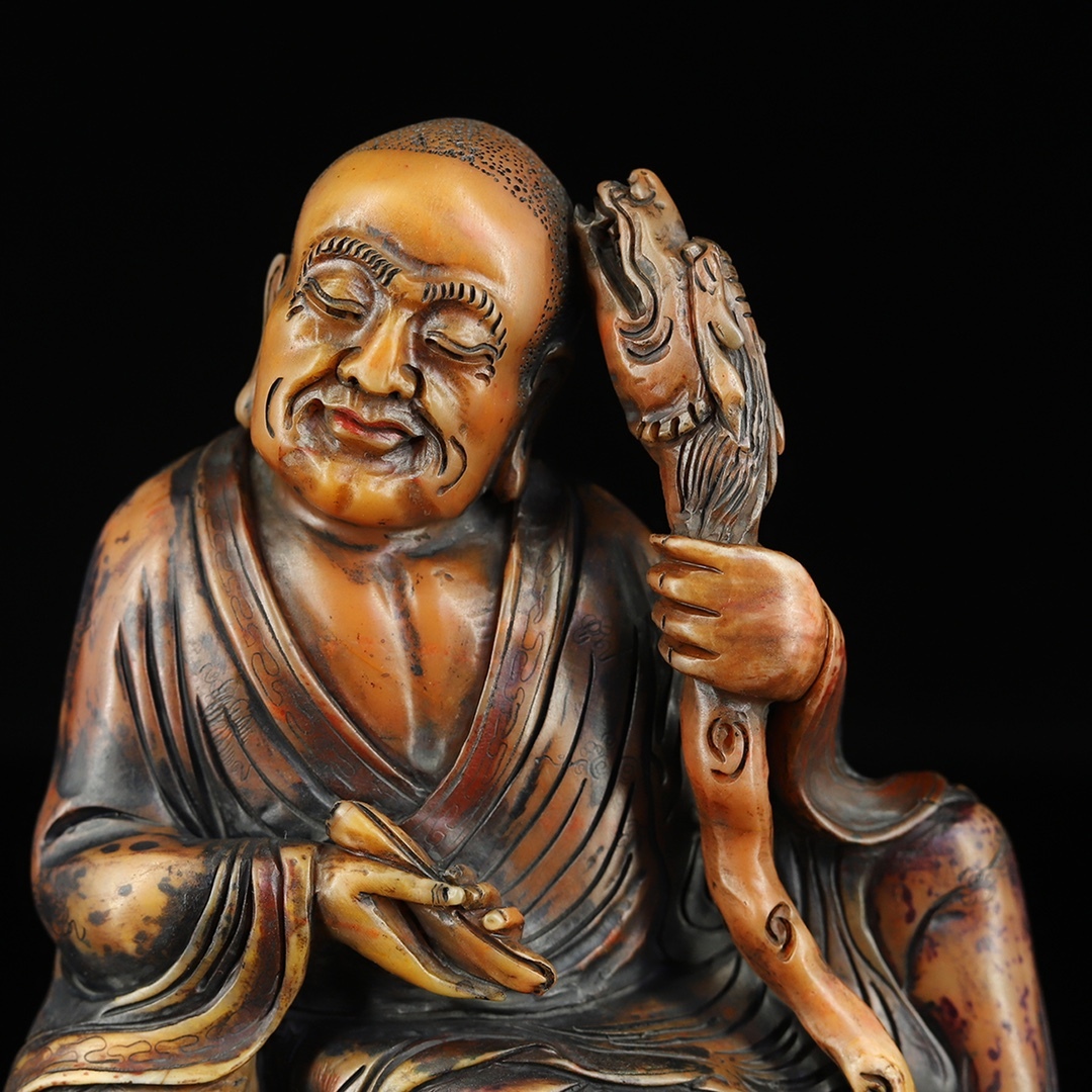 *珍品旧蔵* 清 寿山石 田黄石 彫刻 彩繪羅漢尊者 天然石 手彫 篆刻 極細工 中国古玩 骨董品 H49