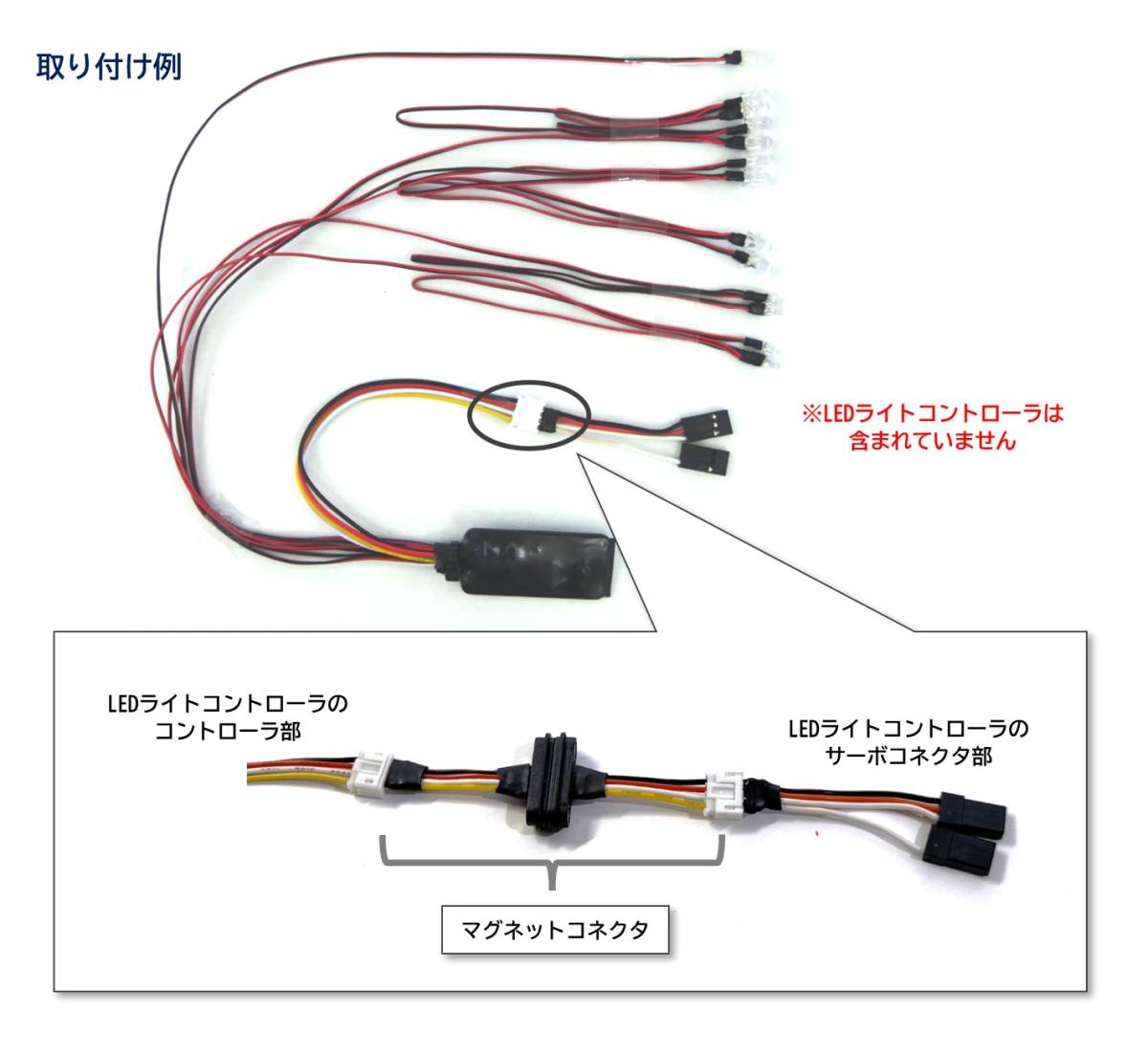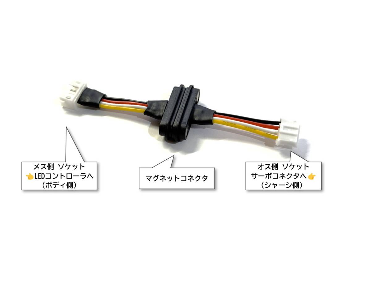 ・当方で出品中のRCスロットル連動LEDコントローラの中間コネクタ部に割り込ませることで、マグネットでの着脱が可能になります。