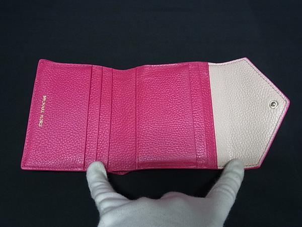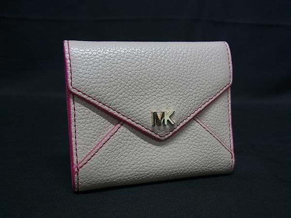 ■美品■ MICHAEL KORS マイケルコース レザー 三つ折り 財布 ウォレット 小銭入れ 札入れ カード入れ ライトピンク系 DH8409