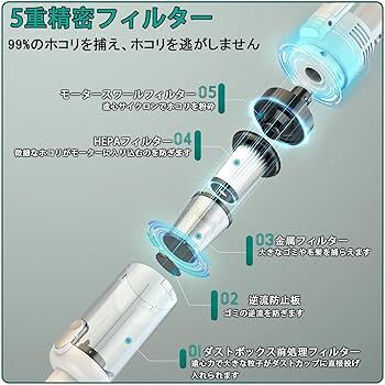 多層濾過システムを搭載し、99%のホコリを効果的に除去し、さらに0.3マイクロメートル以下の粒子を除去し、よりさわやかな空気を呼吸させます。 ステンレスフィルターの使用はHEAPフィルターの寿命を延ばすことができますが、伸縮セットブラシブラシはHEPAフィルターの隙間の汚れやホコリを簡単に掃除でき、クリーニングをより徹底させます。 また、HEPAフィルターは洗濯・乾燥・繰り返し使えるので安心です。 集塵カップに汚れがある場合、心配しなくても簡単に取り外して水で洗えます。