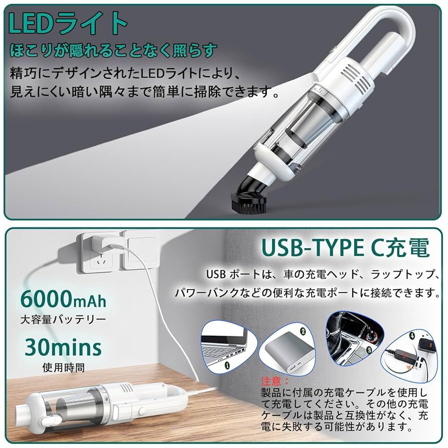 【USB-Type C充電式6000mAh大容量で26分間連続使用】