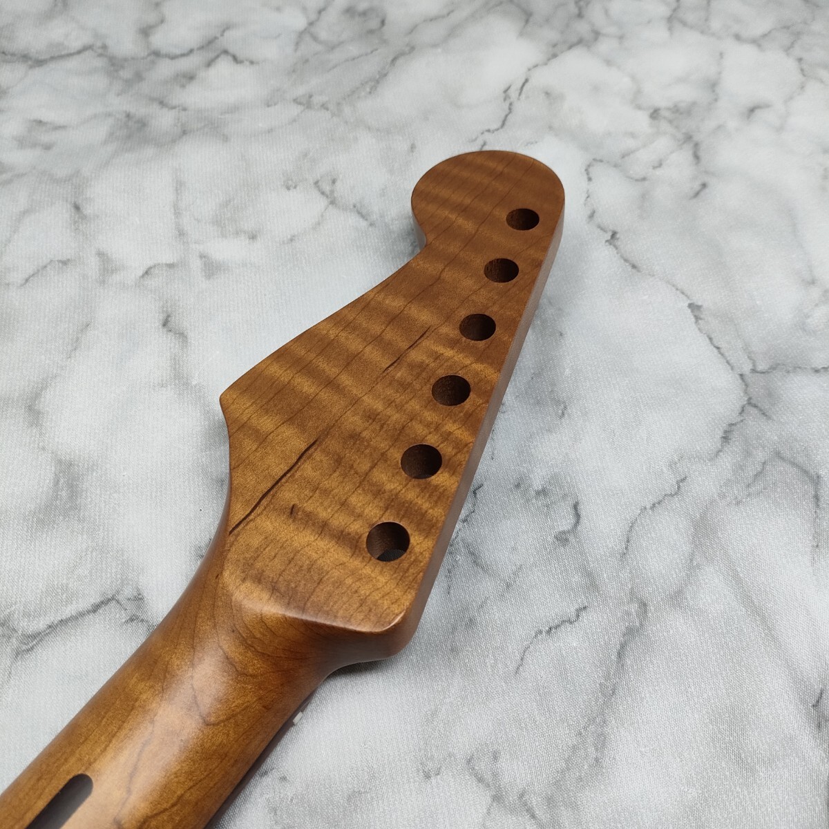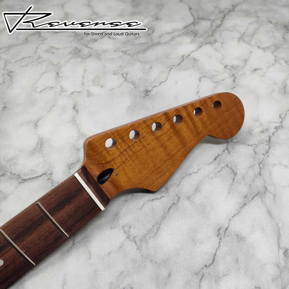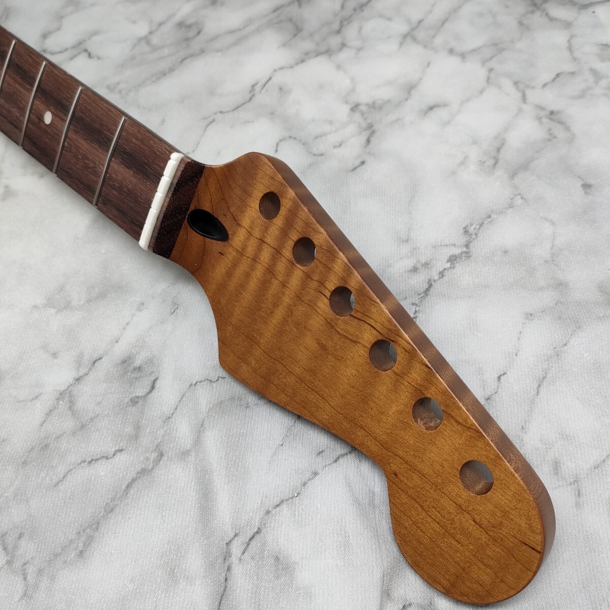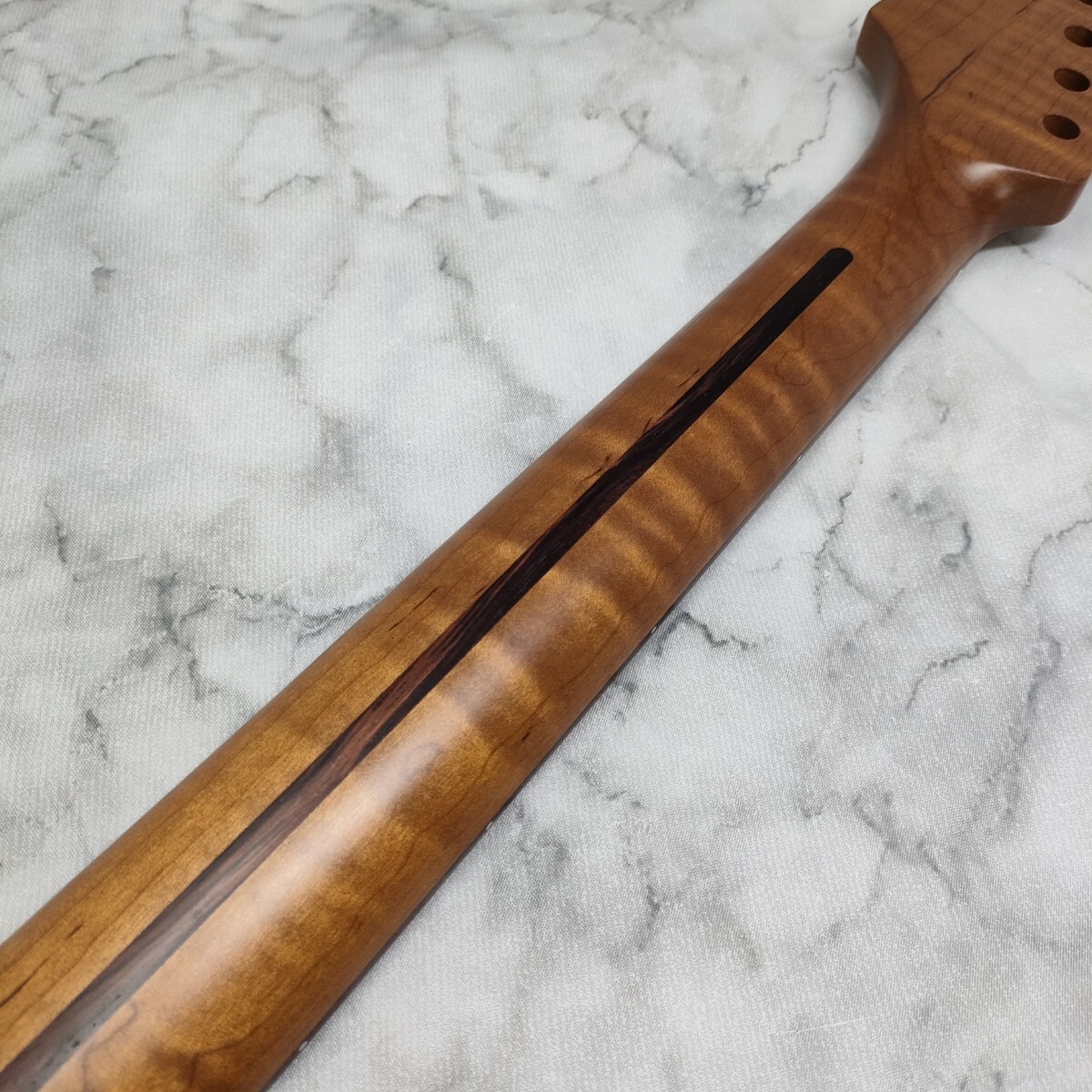 新品 ストラト用 フレイムメイプル ギターネック 22F ローステッド ローズウッド指板 虎目 ストラト用