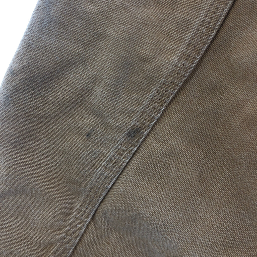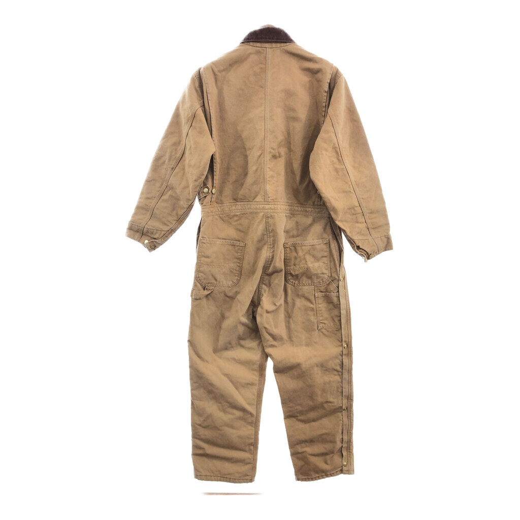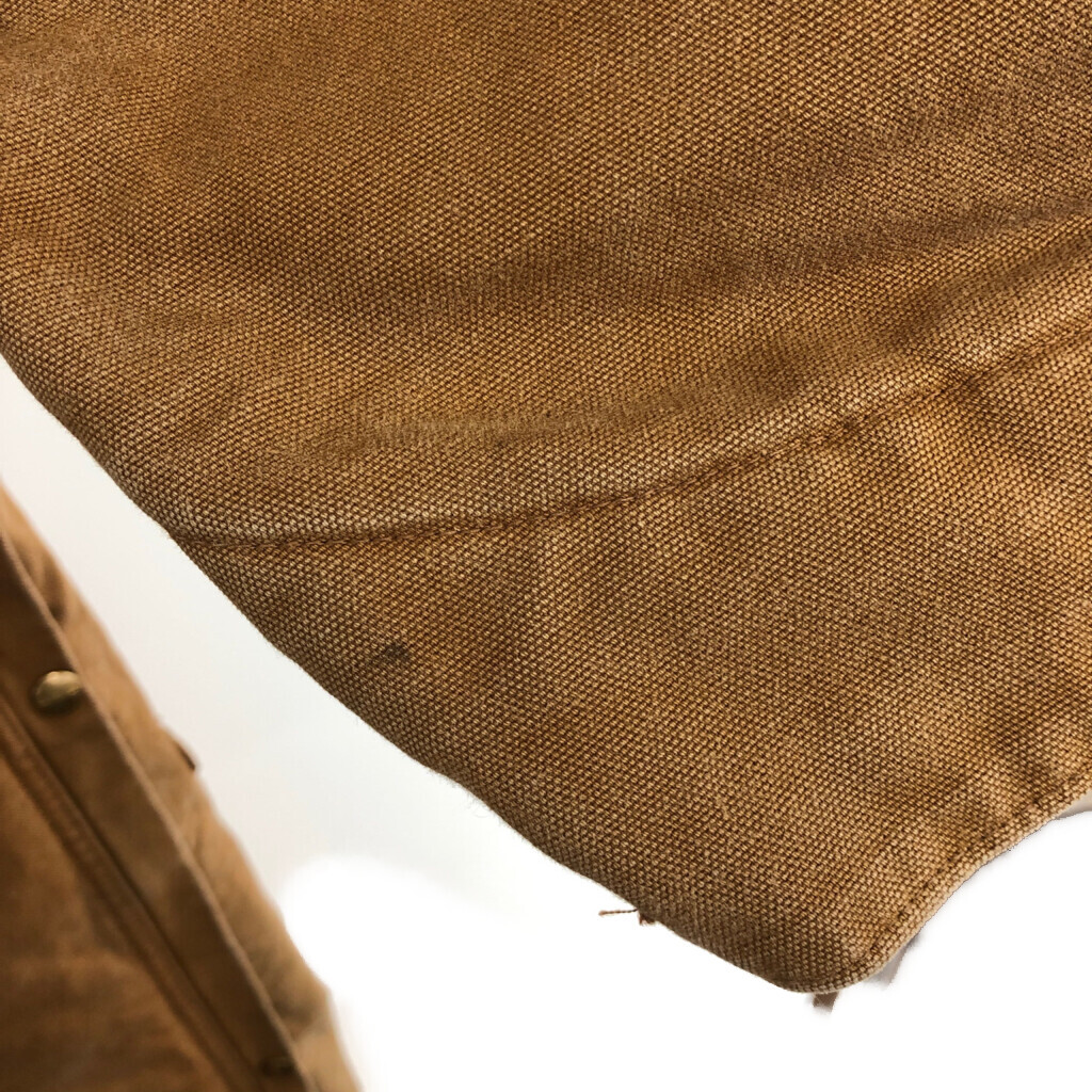 | 【商品管理番号】 P9408 【ブランド】 Carhartt/カーハート 【サイズ】 46 REGULAR 【実寸サイズ】 総丈:約168cm 肩幅:約54cm 身幅:約62cm ウエスト:約110cm 股上:約40cm 股下:約79cm わたり幅:約36cm 裾幅:約26cm 袖丈:約63cm 【主な素材】 表地 : コットン 裏地 : 13848 中綿 : 13897 【色】 ブラウン 【仕様】 生産国 : USA製 90年代 裏地キルティング 大きいサイズ、ワーク 【状態】 汚れ:袖、スネ キズ:襟、袖先、胸、腹部、背中、腰、裾、股、ヒップ 破れ:裾 特記事項: 使用感有り | |||