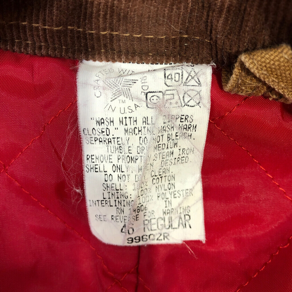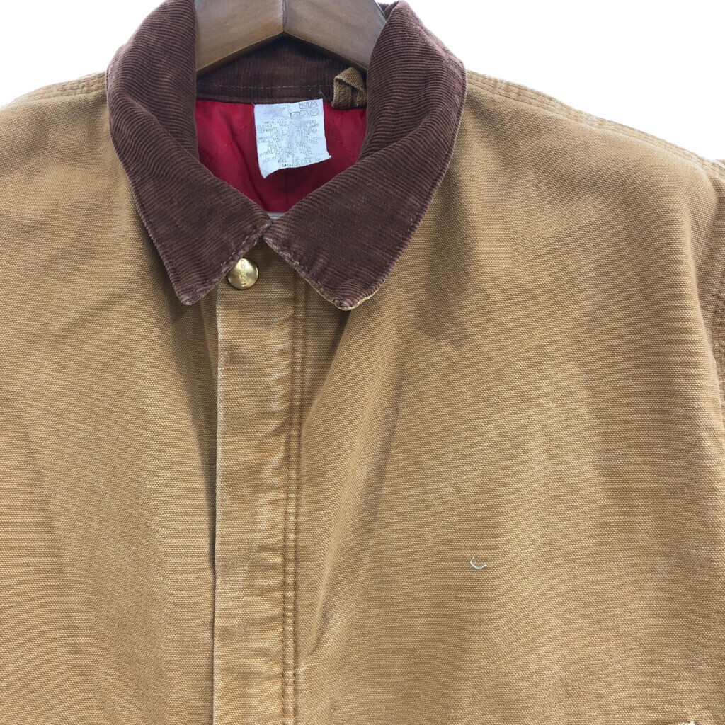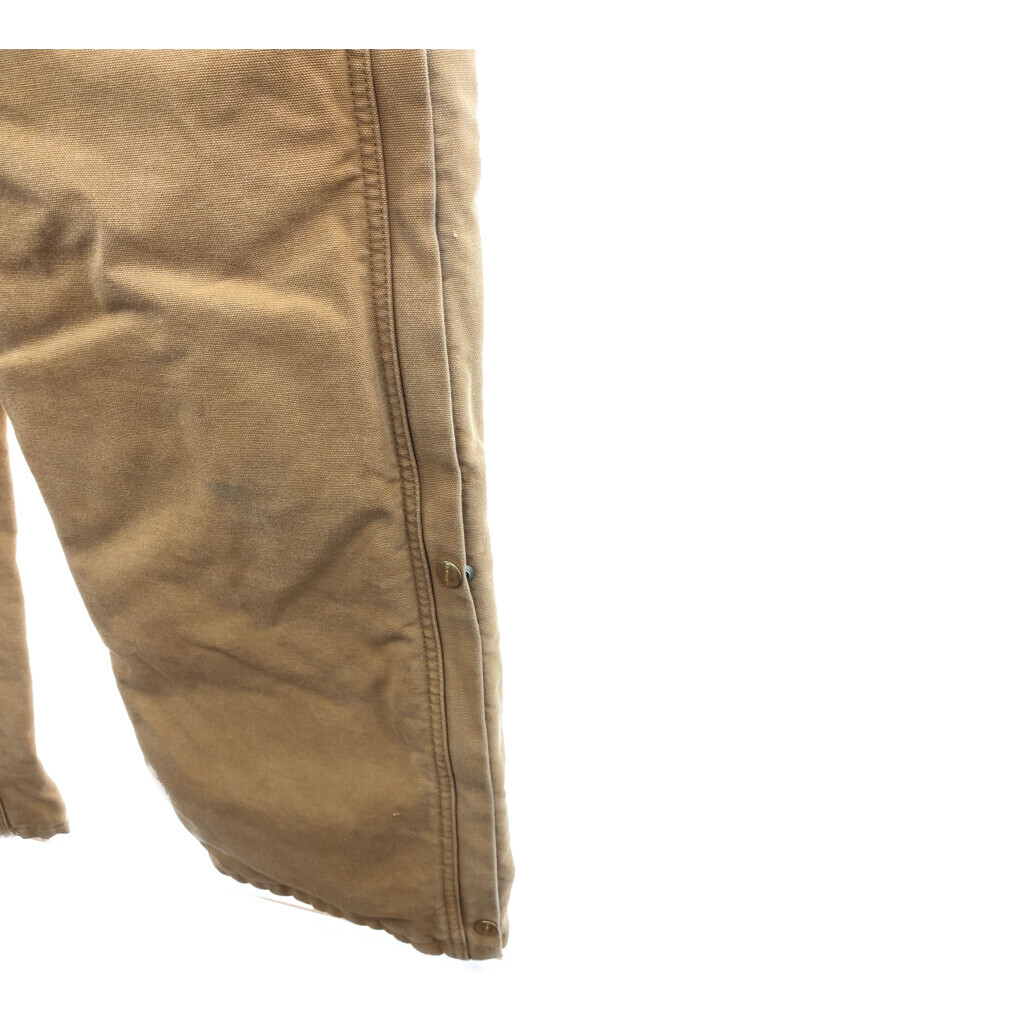 | 【商品管理番号】 P9408 【ブランド】 Carhartt/カーハート 【サイズ】 46 REGULAR 【実寸サイズ】 総丈:約168cm 肩幅:約54cm 身幅:約62cm ウエスト:約110cm 股上:約40cm 股下:約79cm わたり幅:約36cm 裾幅:約26cm 袖丈:約63cm 【主な素材】 表地 : コットン 裏地 : 13848 中綿 : 13897 【色】 ブラウン 【仕様】 生産国 : USA製 90年代 裏地キルティング 大きいサイズ、ワーク 【状態】 汚れ:袖、スネ キズ:襟、袖先、胸、腹部、背中、腰、裾、股、ヒップ 破れ:裾 特記事項: 使用感有り | |||