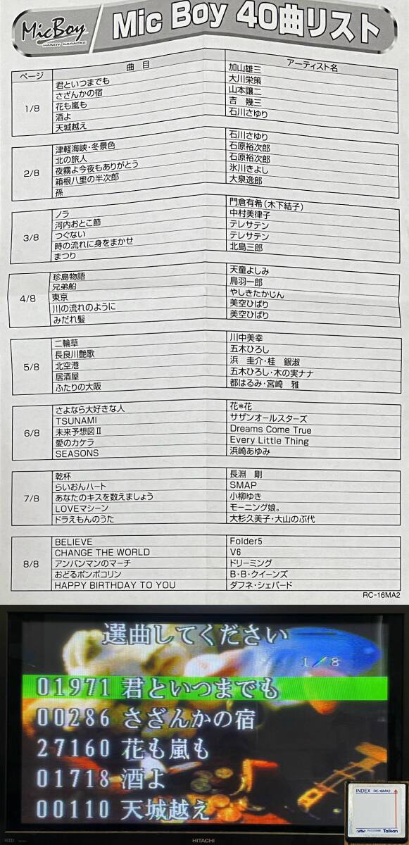 家庭用ハンディカラオケ・マイクボーイ/MBー100用の曲カードリッジ・200曲入り
