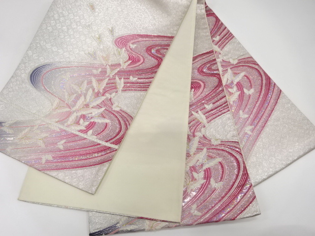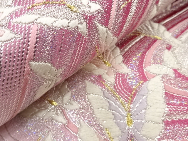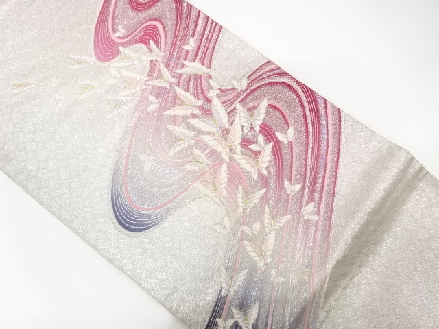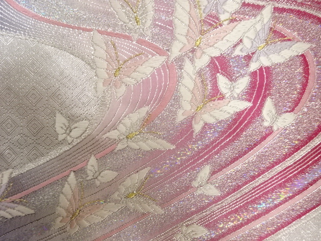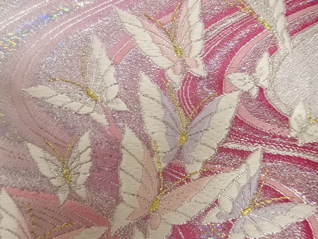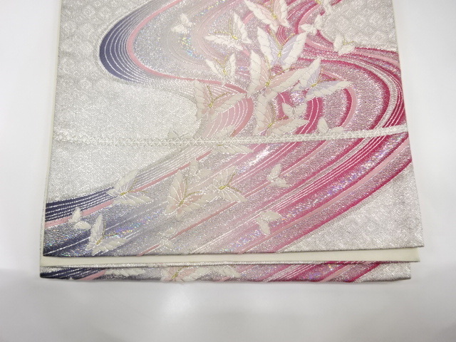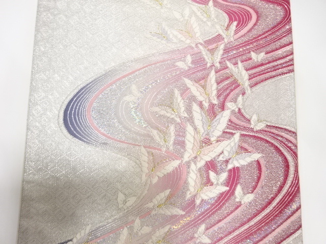 美品 流水に蝶模様織り出し 振袖用 袋帯 (IH3K-059)