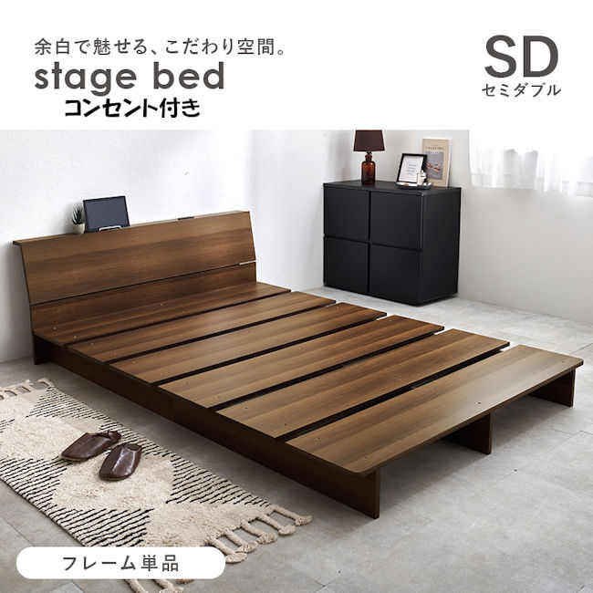 ベッドフレームセミダブルベッド(コンセント付)ロースタイル ステージベッド(254)