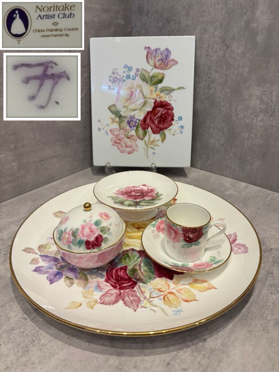 【トレモ】ノリタケ Noritake 【artist club アーティストクラブ】5点セット 絵付け師サインあり「JJ」 ハンドペイント まとめ売り 一点物