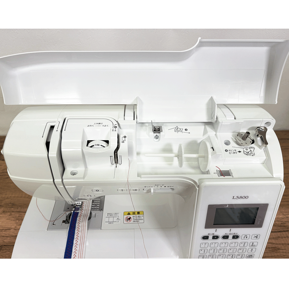 模様数20、糸調子、送り歯枚数、自動糸切り、針穴糸通し、下糸クイック、簡単下糸巻き、天びんシャッター、止めぬいスイッチ、ドロップフィード、LEDライト、針位置停止(切替)、エラー及びメッセージ表示