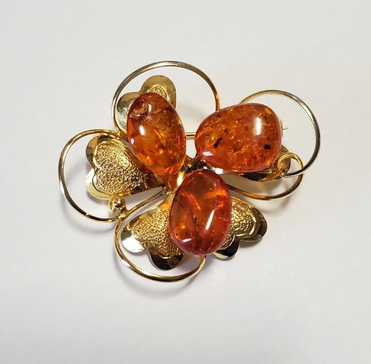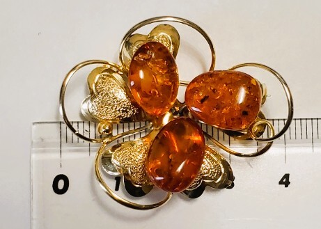 琥珀 コハク ブローチ レディース アクセサリー 6,2g きれいめ