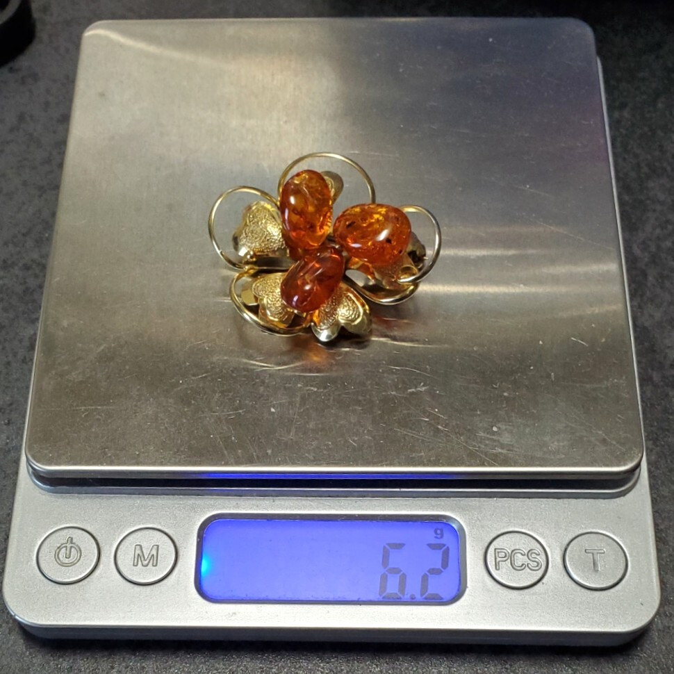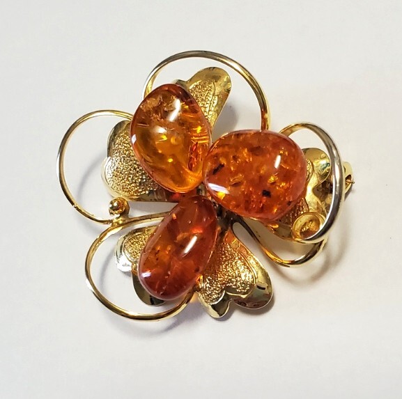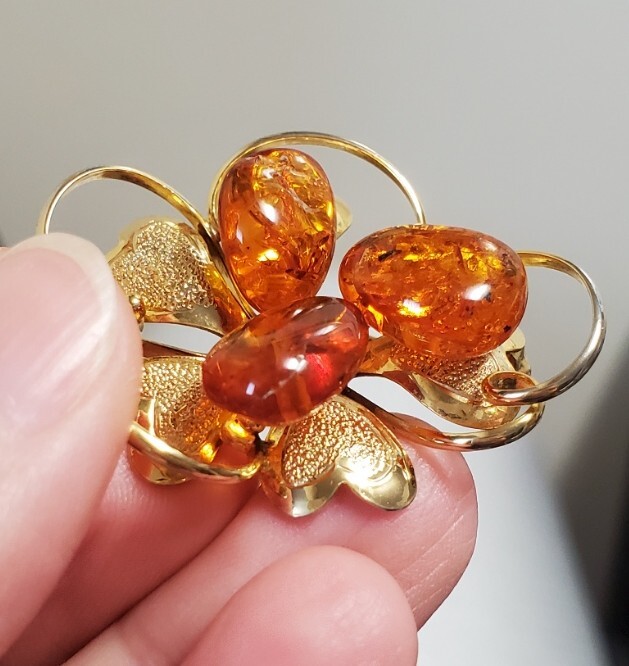 琥珀 コハク  ブローチ  レディース   アクセサリー 6,2g  きれいめ