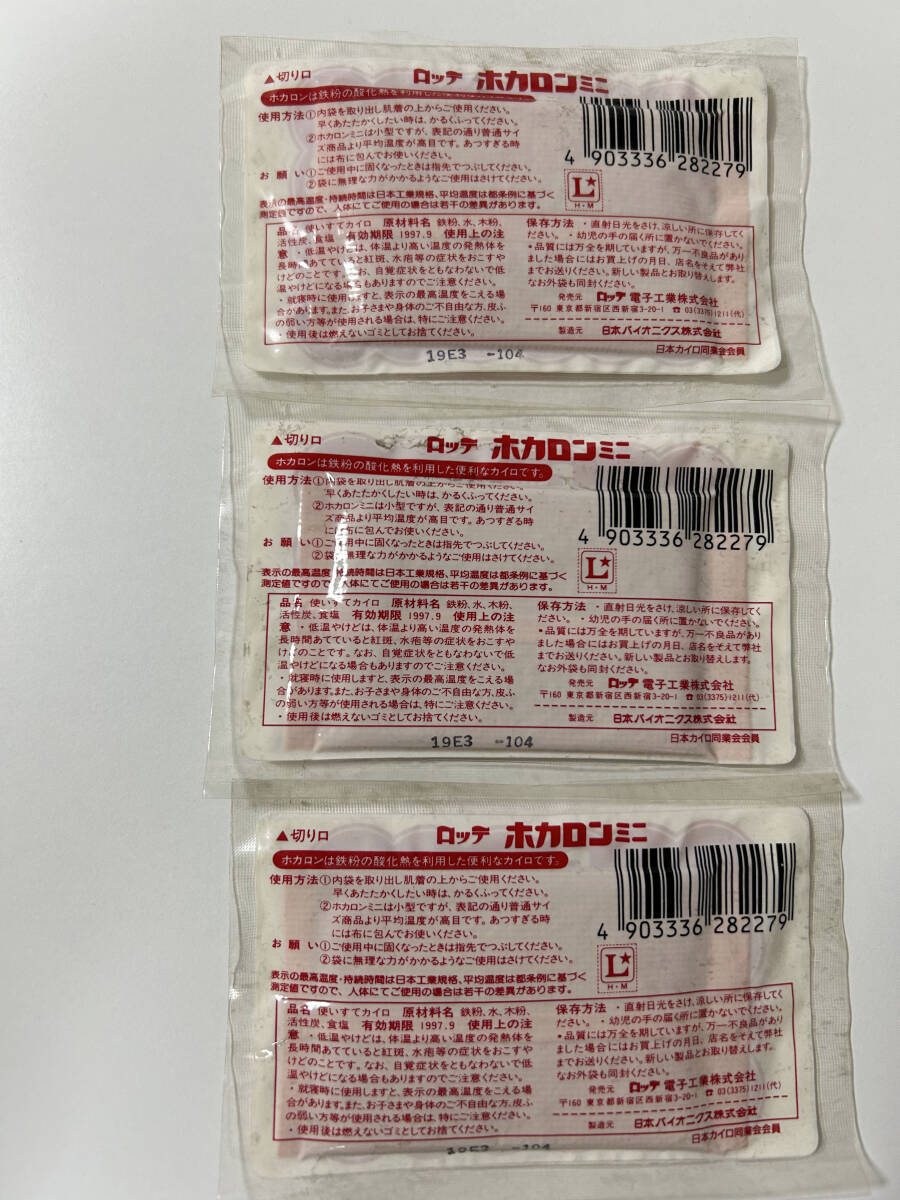【昭和レトロ】ロッテ ホカロンミニ 未使用品 3個セット 有効期限1997年 レトロデザイン コレクション用 当時物